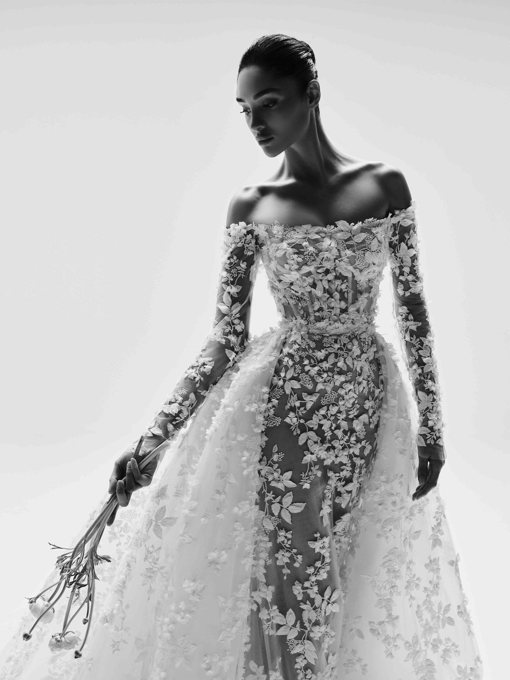 For the Spring 2023 season, the ZUHAIR MURAD bride consecrates the nuptials of fantasy and reality drawn from the cosmos. Her eyes closed, she envisions her gown with a thousand reflections. A sundry of images scroll past… A billowing magical spectacle unfolds before her: Ethereal enchantments of crystals speckled on skirts of interminable lengths, sensual