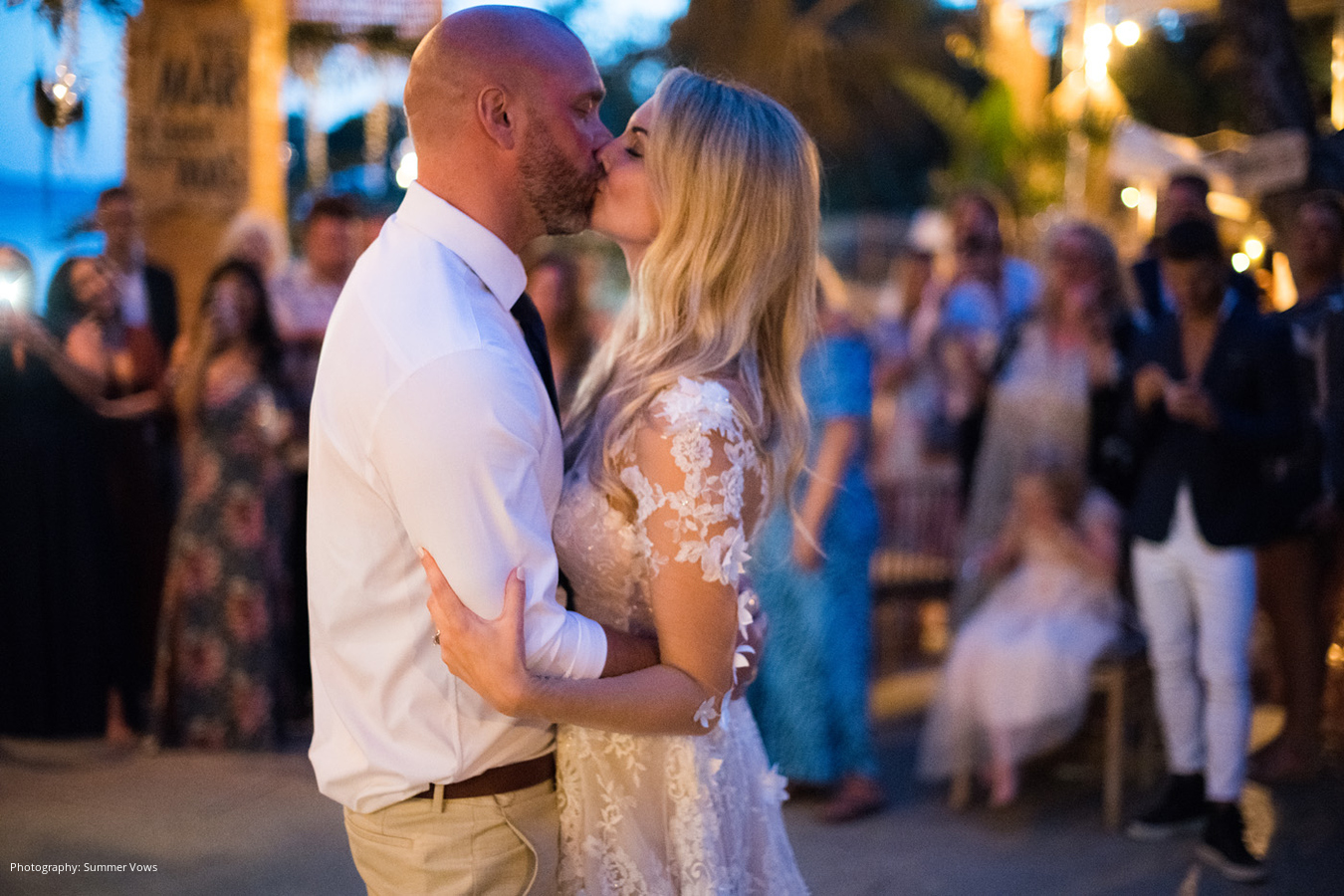 Guests also enjoyed the bride and groom’s signature cocktails – a “Marry Me Margarita” with tequila, orange, rosemary sherbet and fresh lime, and the “Sweetheart Sangria” with Spanish cava. The couple’s semi-nude passionfruit curd and buttercream frosting wedding cake by Cupcake Collection Ibiza was adorned with fresh figs, blackberries and mandarin oranges; and Vovi Ibiza provided made-to-order cold plate artisanal ice cream for dessert.