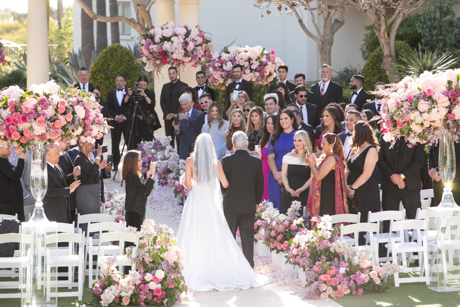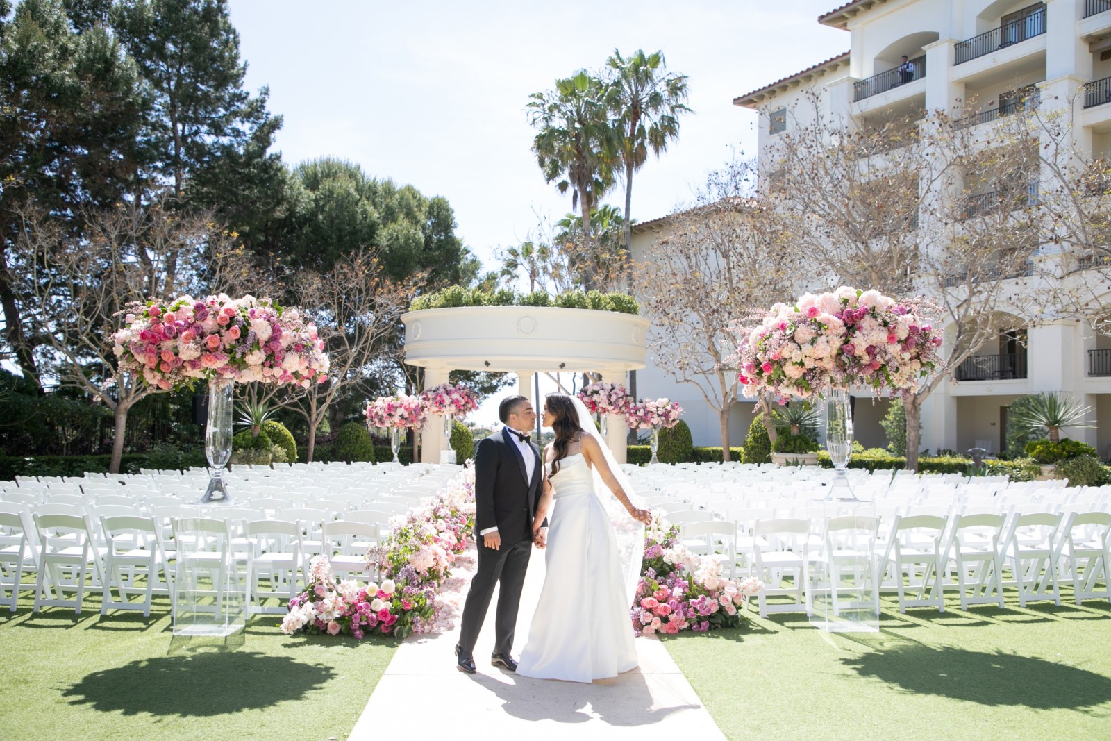 Location: Waldorf Astoria Dana Point; Event Planner: Exquisite Events; Floral Design: Bloombox Designs; Cake: Joanie & Leighs Cakes; Lighting: Special Occasions; Cinematography: Avec Lumiere; Invitations: Jen Simpson; Officiant: Reverand Clint; Late Night Snacks: Shahnawaz Catering; Photography: Braja Mandala Photography