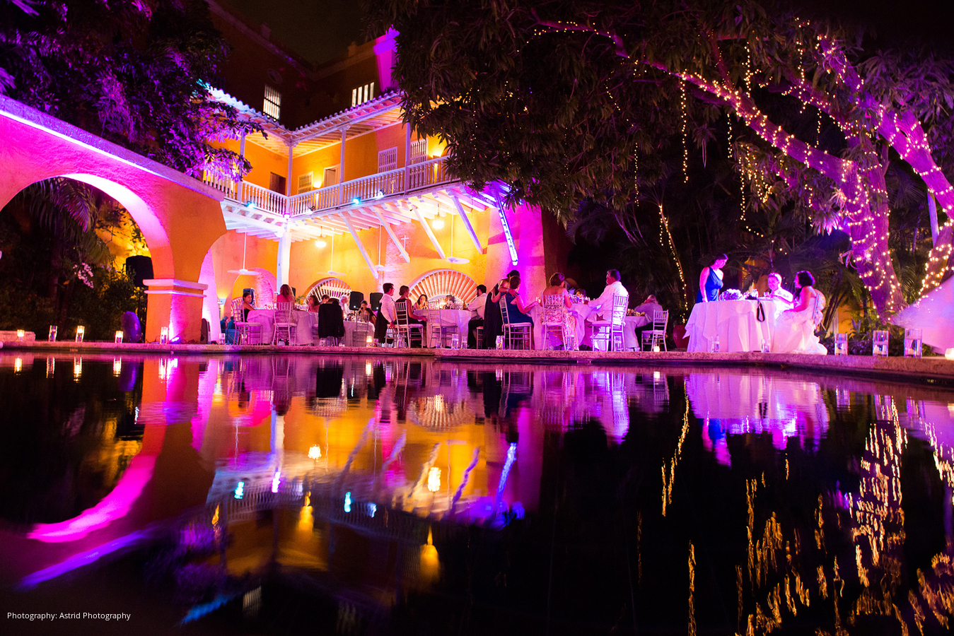 Location, Linen, Rentals and Lighting: Casa Conde de Pestagua, Cartagena, Colombia; Caterer, Event Design and Planner: Allessandra Olivo Trillos, Cartagena, Colombia; Photography: Astrid Photography; Cake: Elsy de Figueroa, Cartagena, Colombia; Floral Design: William Baena, Cartagena, Colombia; Wedding Dress: Amsale