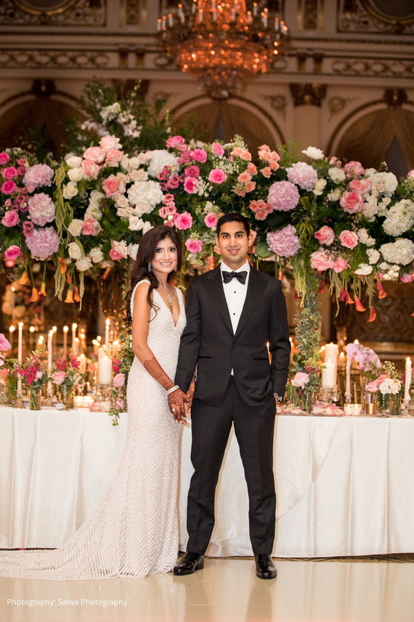 Floral and Event Design: Elegant Affairs, Fairfield, NJ; Ceremony Dress and Groom’s Attire: Sabyasachi; Reception Dress: Naeem Khan; Bridal Salon: Bergdorf Goodman