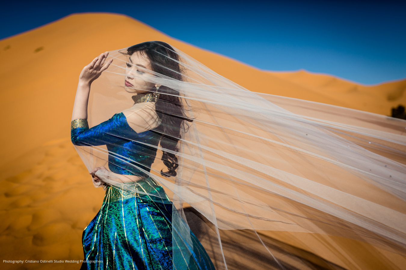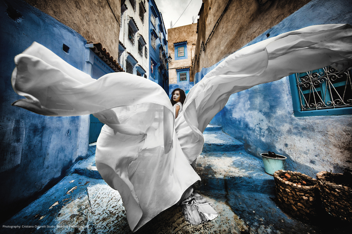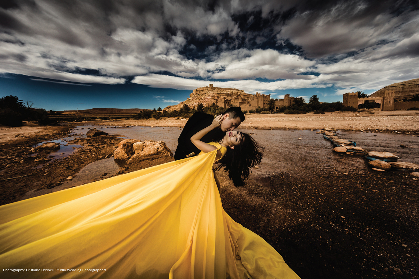 “For the photographer it is an ideal situation,” says wedding photographer Cristiano Ostinelli, who recently took a weeklong trip to Morocco with Melissa Yasin and Christianus Adhitya for a pre-wedding shoot. “We have the most beautiful locations in the world, and I have a long time to express my creativity without the stress and the limited time of a real wedding day.”
