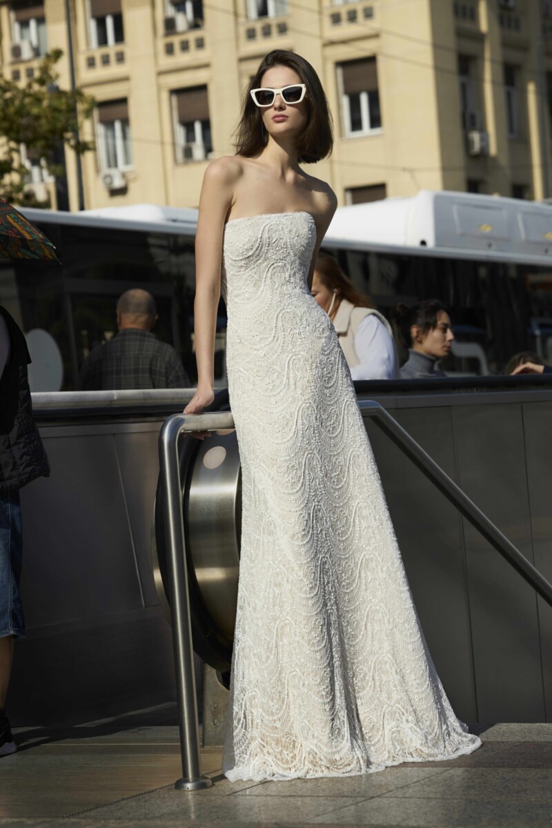 Seamlessly merging the brand’s ready-to-wear and bridal collections, his creations embody a carefully considered evolution, offering refined and versatile silhouettes for today’s modern bride.