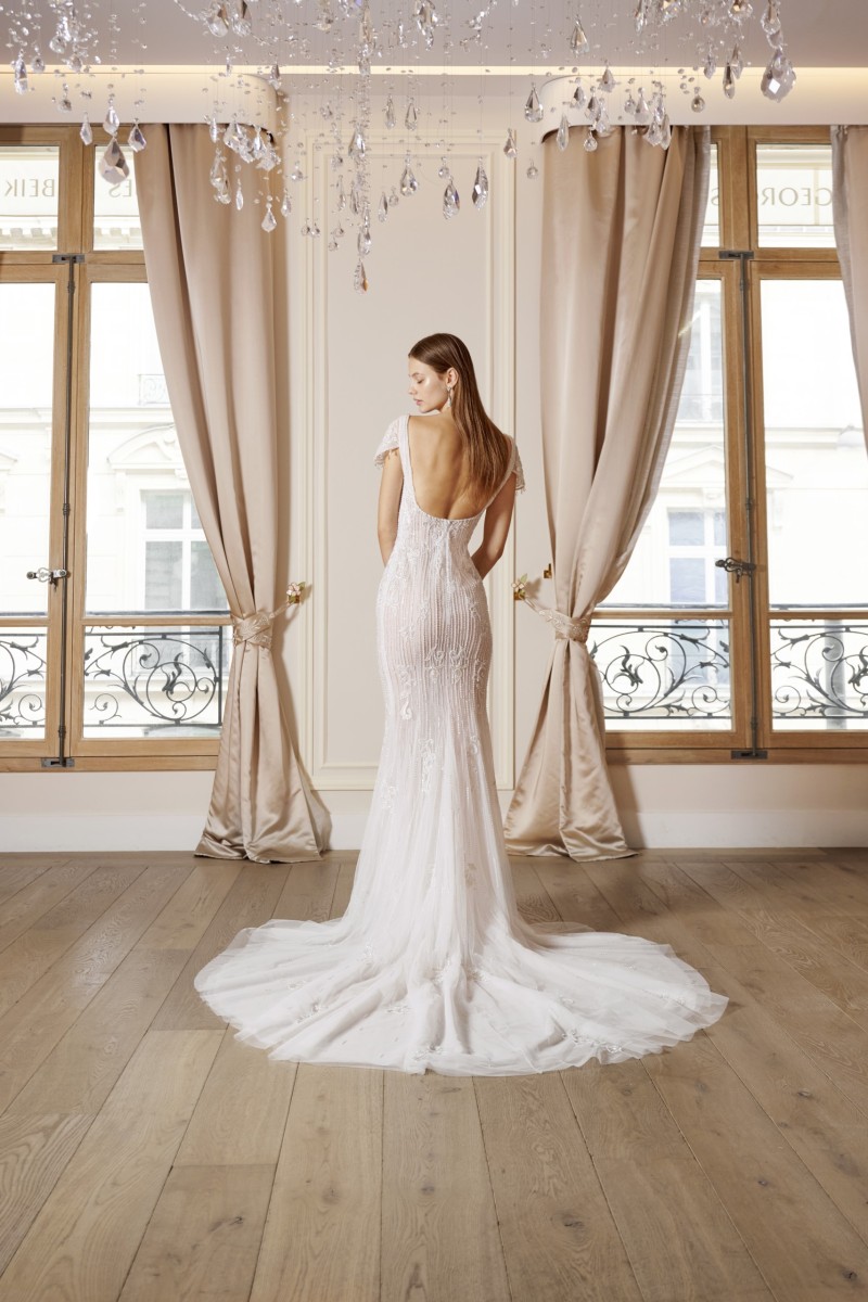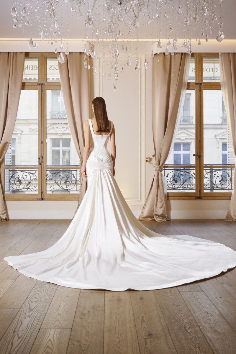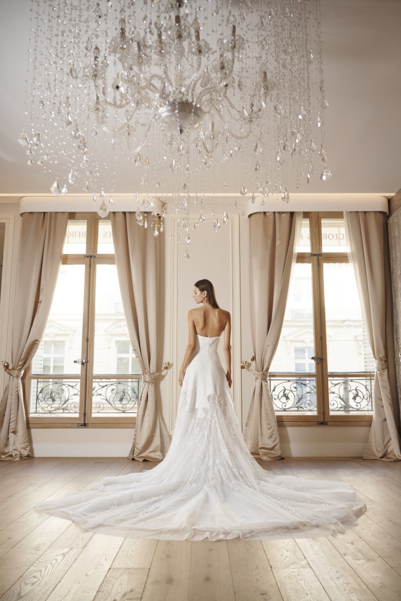 These gowns sculpt silhouettes that elongate the body to better exalt the allure and radiance of the woman. Echoing the Grand Siècle’s style, the cinched waist summons the royal presence of a confident aristocracy. The couturier's signature is manifested in a modern union of elegance and sensuality. While the busts offer a contemporary interpretation of statuary majesty, the gowns flow gracefully like waves, enhancing the movements of the body and infusing an air of mystery and magic.
