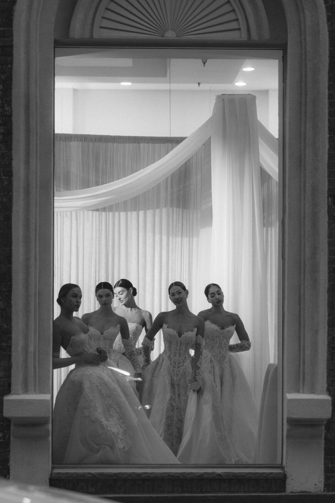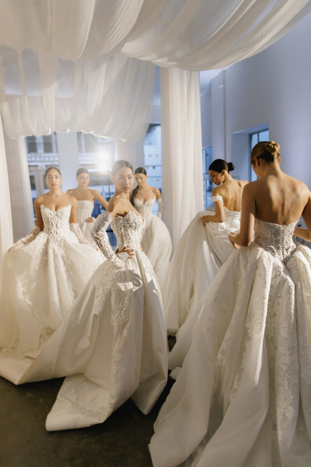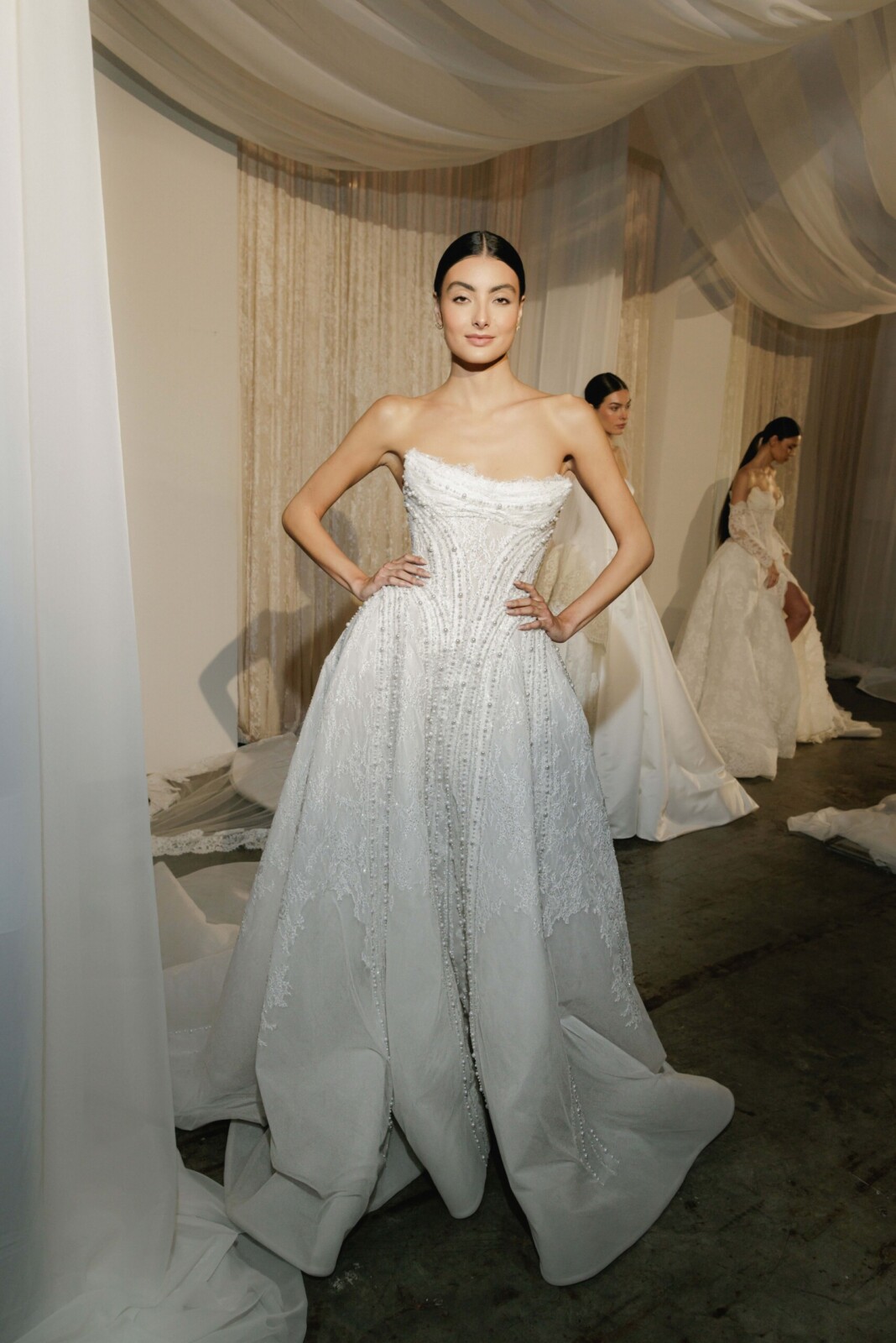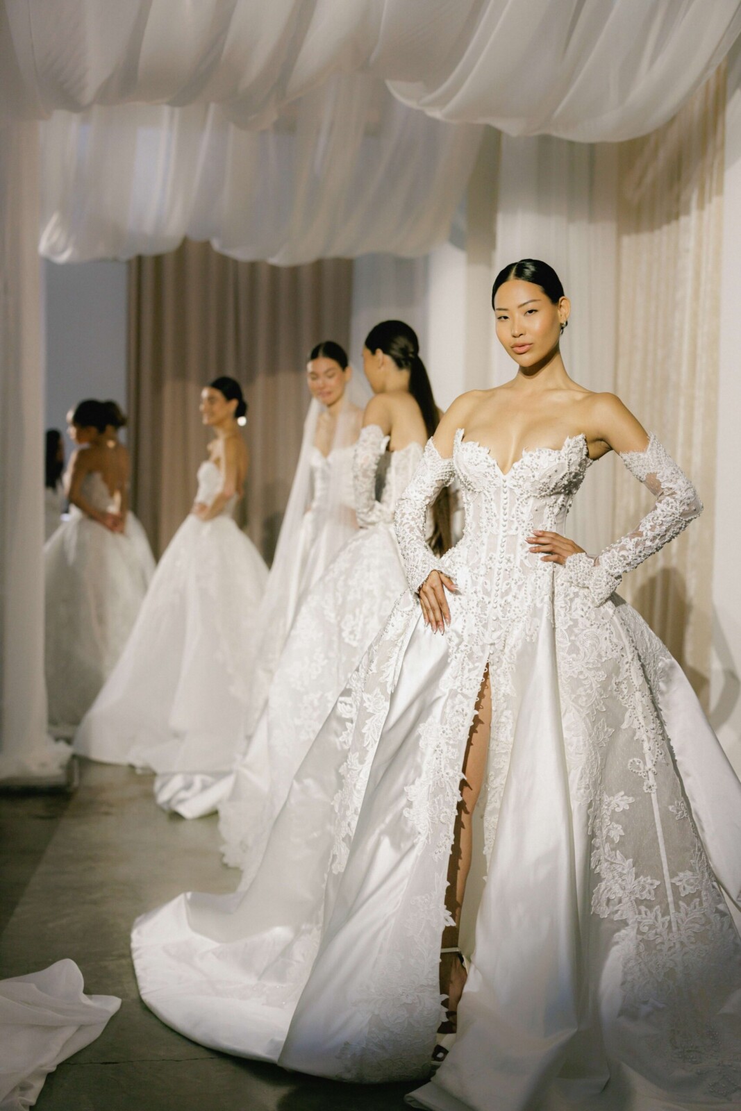 The collection is currently on a worldwide trunk show tour for 2026, targeting brides looking for contemporary, high-end bridal designs.