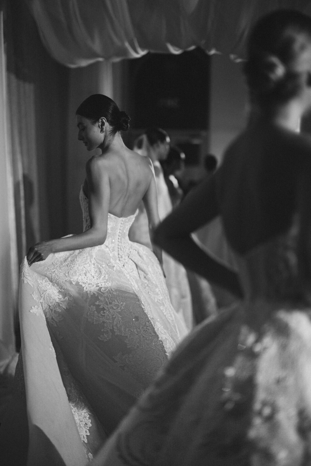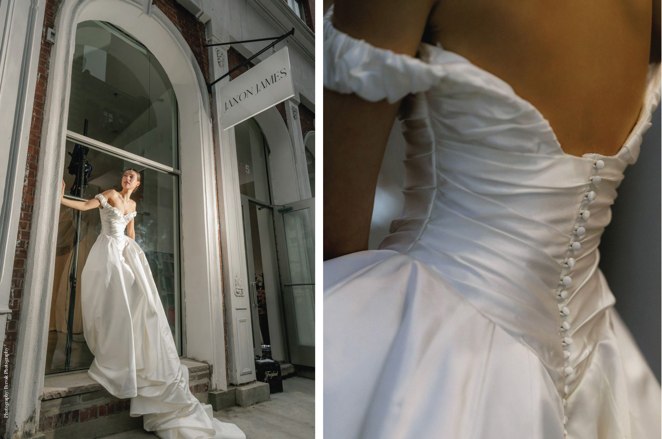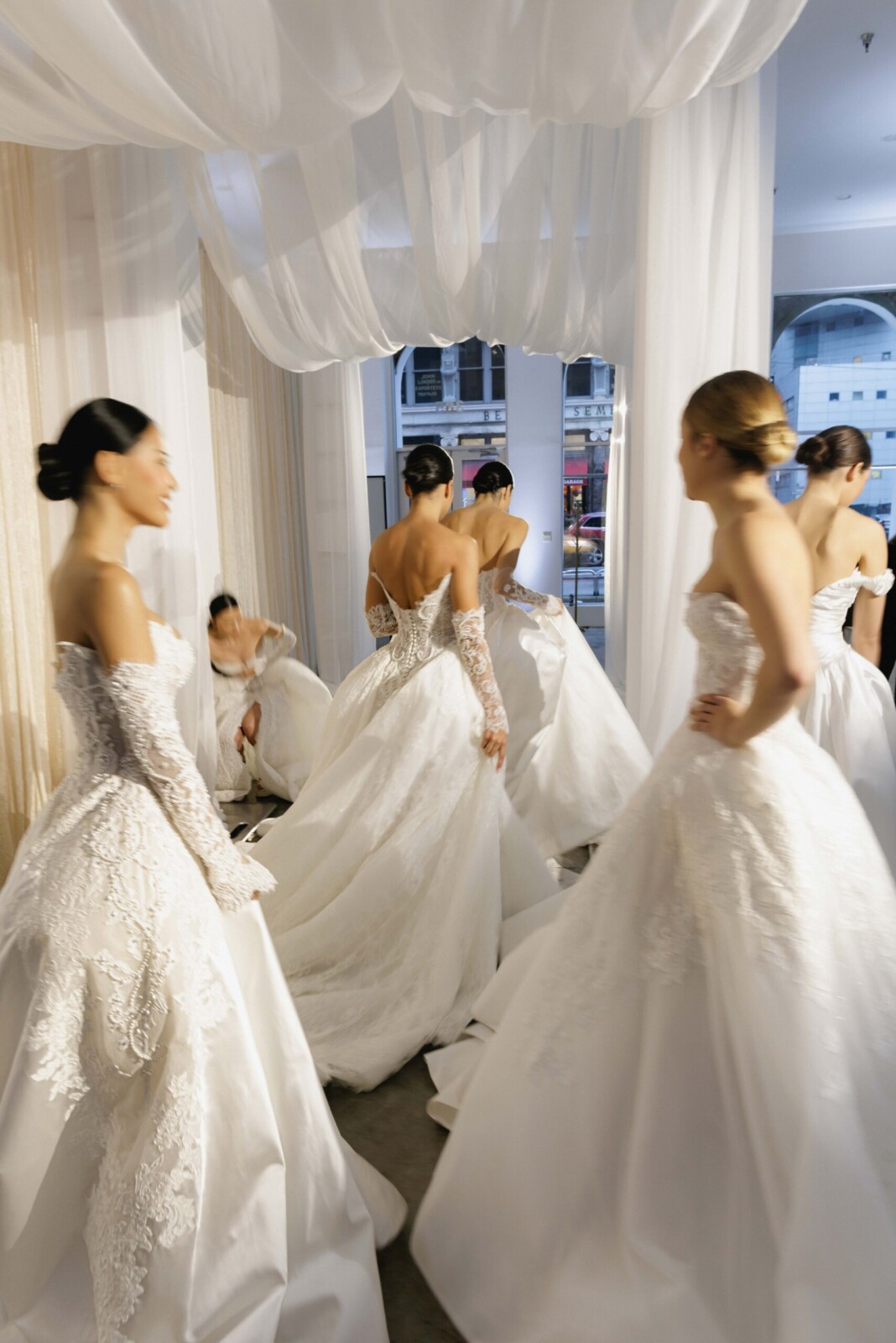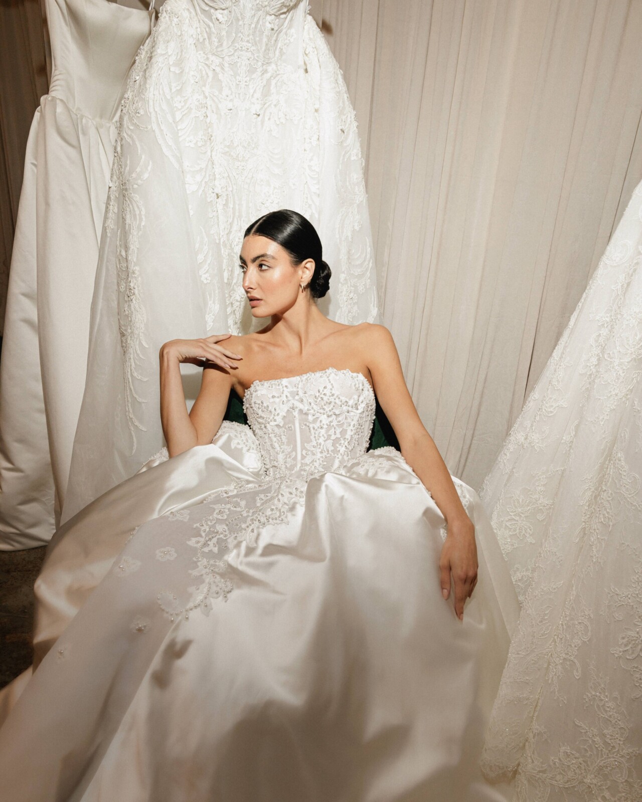 The collection is currently on a worldwide trunk show tour for 2026, targeting brides looking for contemporary, high-end bridal designs.