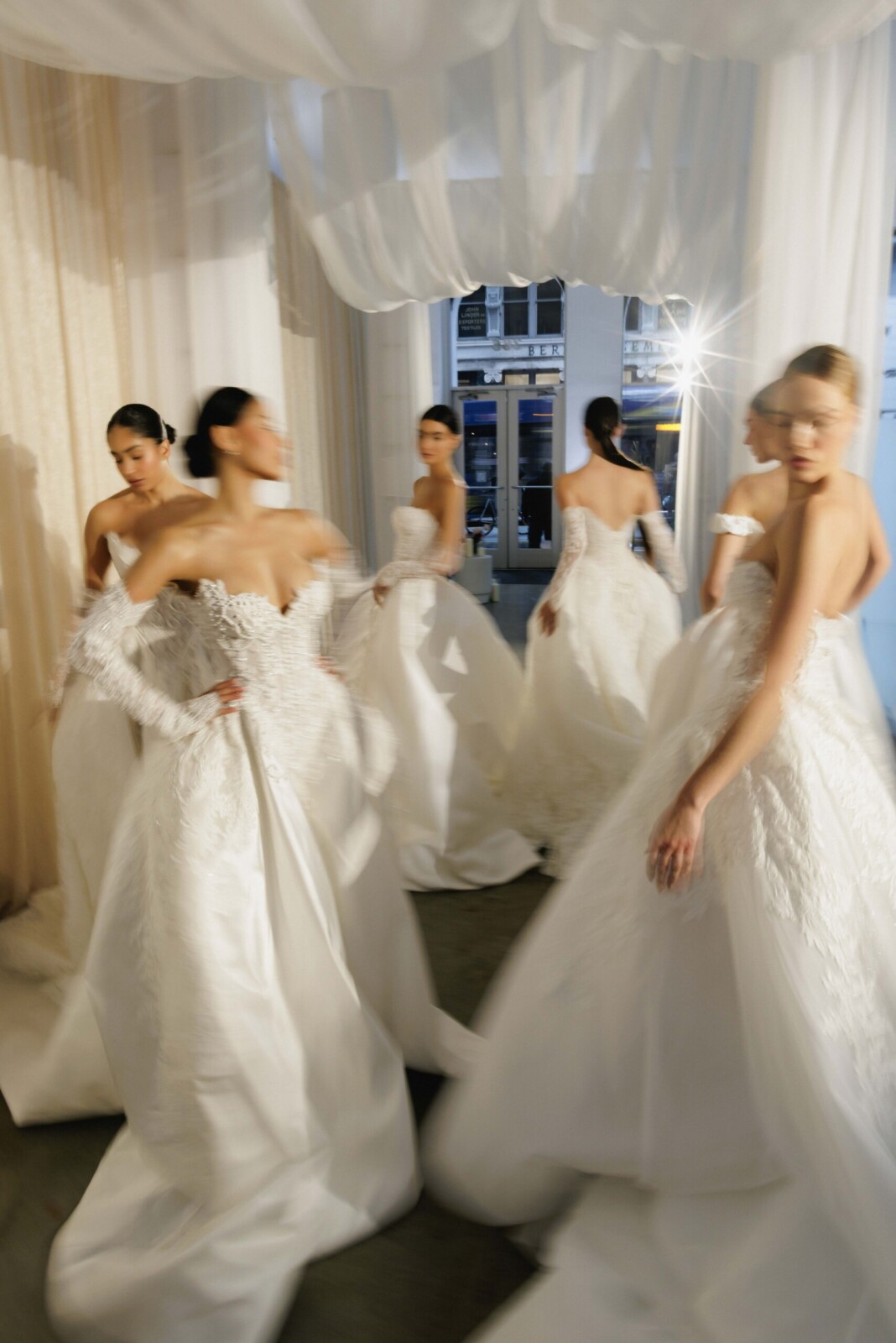 Pallas Couture unveiled its "Maison La Rose '26" collection during October 2025 New York Bridal Fashion Week (NYBFW), featuring sculptural, modern couture gowns in collaboration with Jaxon James Couture Bridal. The collection showcases intricate craftsmanship, including the "HEIRESS" gown with its structured, romantic design, and is marked by a focus on high-fashion, detailed bridalwear.