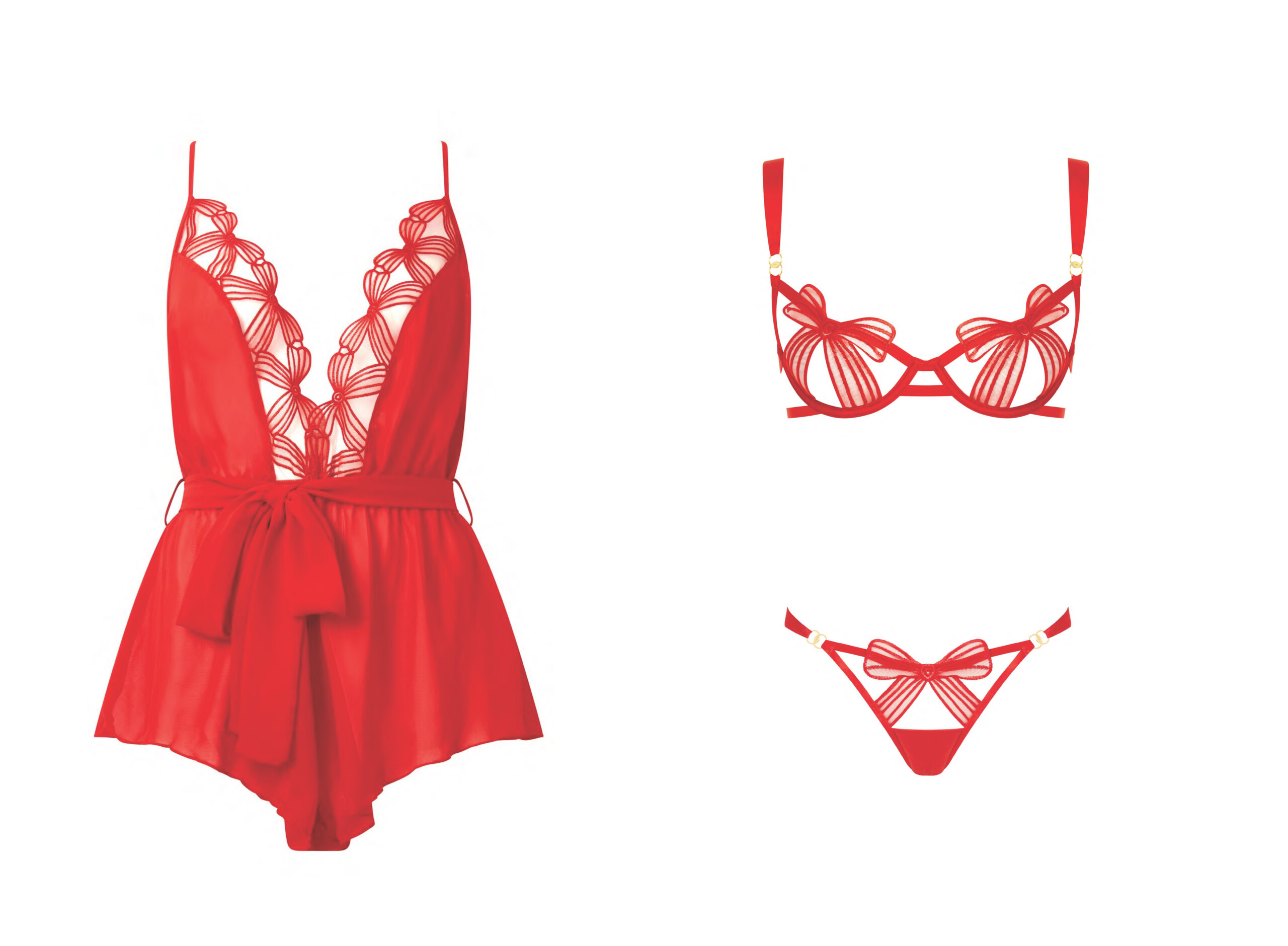 Annabel Red Teddy; Annabel Open-Back Red Brief; Annabel Wired Red Bra
