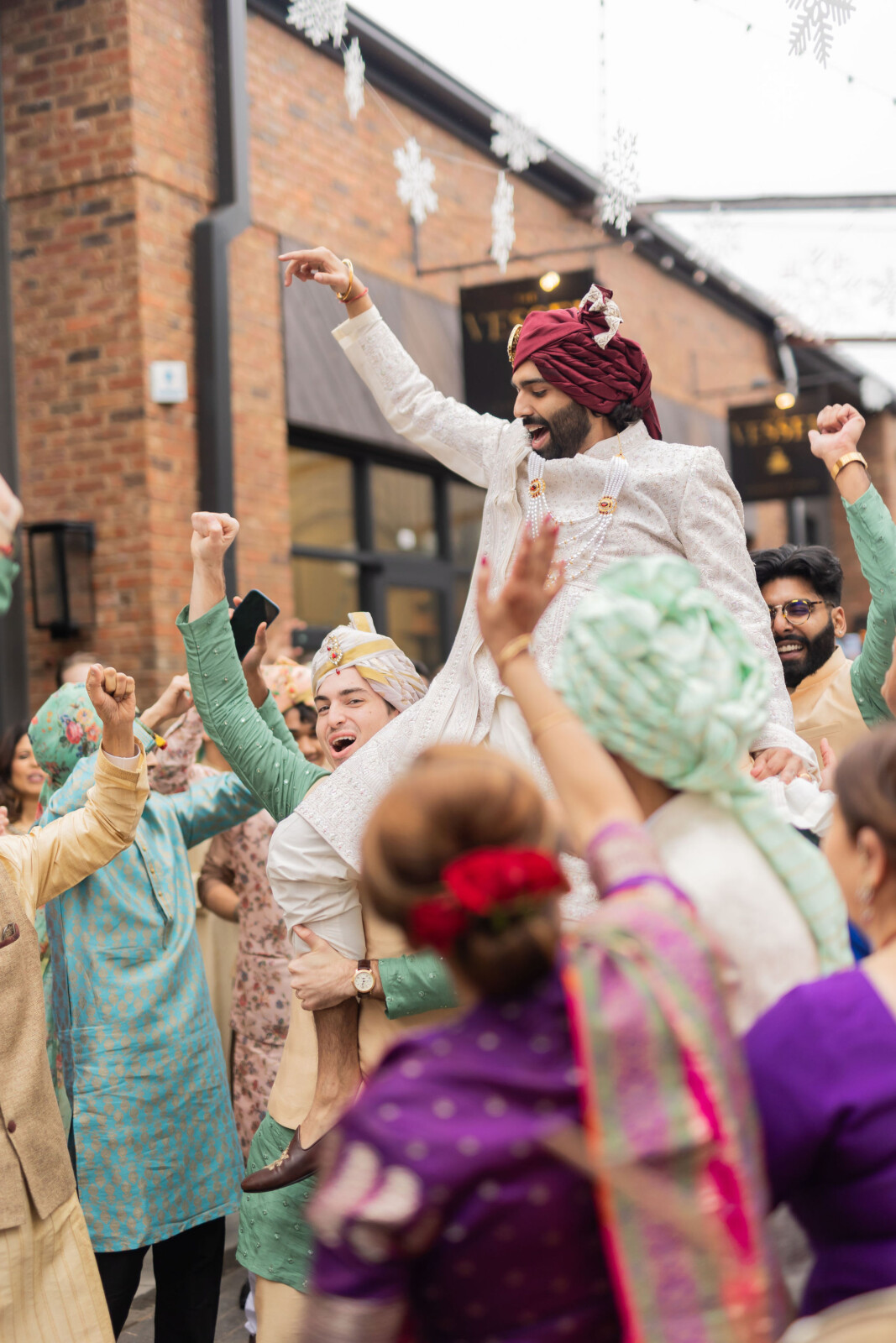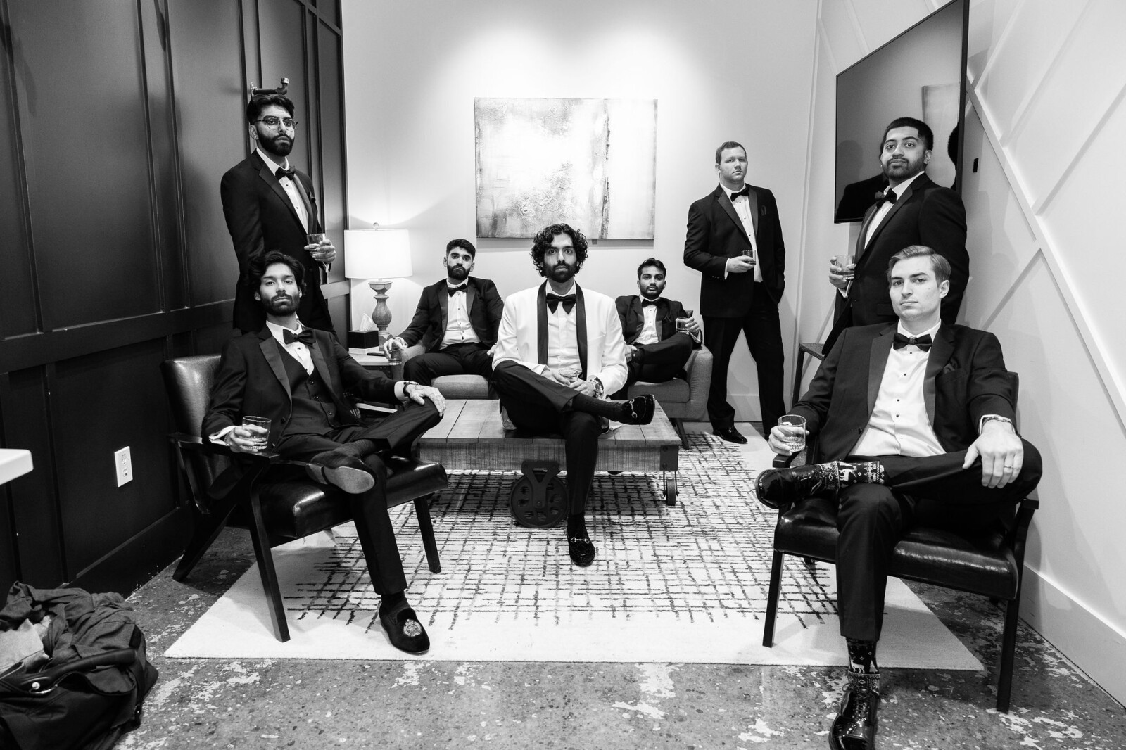Location: Stovehouse, Huntsville, AL; Planning & Event Design: Wera Events; Floral Design & Decor: Utopian Events; Invitations: Atelier Azure; Caterer: District Events & Catering; Cake: A Wilson Cakes; Rentals: EventWorks; Dance Floor: Indaglow; Dhol: Dholi Saag; Entertainment: Awaaz Entertainment; Choreographer: Sumera Jiva; Live Painting: Caroline Myers; Hair & MUA: Beauty by Ami; Family Hair & MUA: Femme Beauty by Bhavna; Bridesmaids & Groomsmen Attire: Anokhi Ada; Henna Artist: Manasi’s Art; Photography & Cinematography: ENMUSE