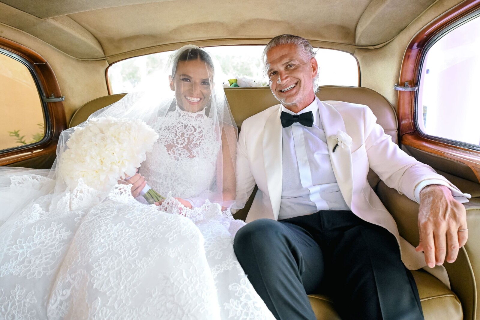 A Monique Lhuillier Wedding Gown and a Ralph Lauren Tux