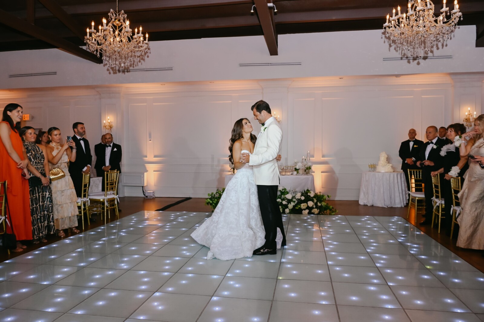 A candlelit wedding reception followed, which kicked off with a surprise introduction of the newlyweds—a choreographed dance to “You Never Can Tell” by Chuck Berry, from the movie “Pulp Fiction.” The night continued with beautifully written speeches, cake cutting, and another family tradition: Bryan and Ansley dancing to “That’s Amore” by Dean Martin while their guests circled around them. Later that night, the party carried on with an outdoor dance floor underneath the moonlit Miami sky.
