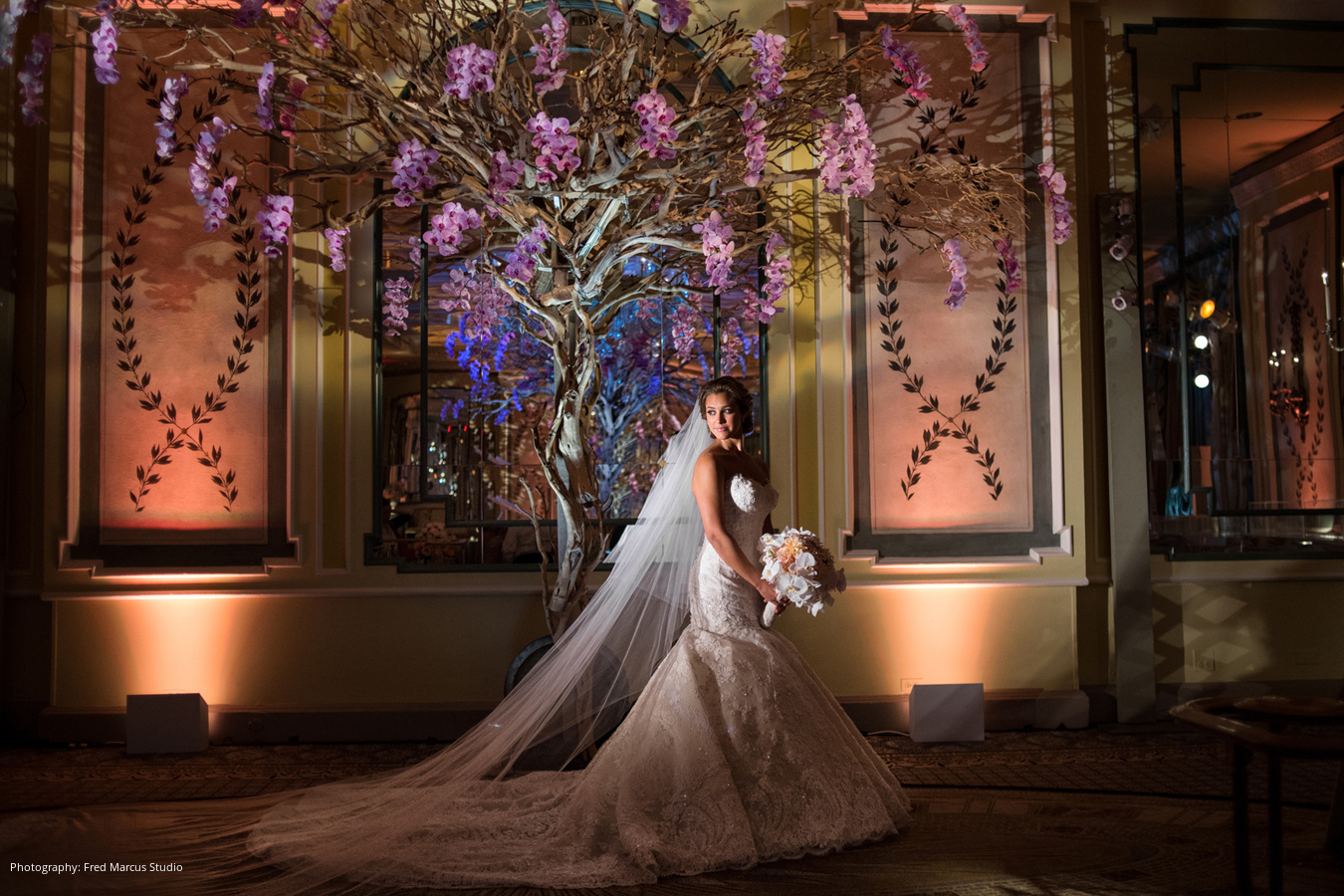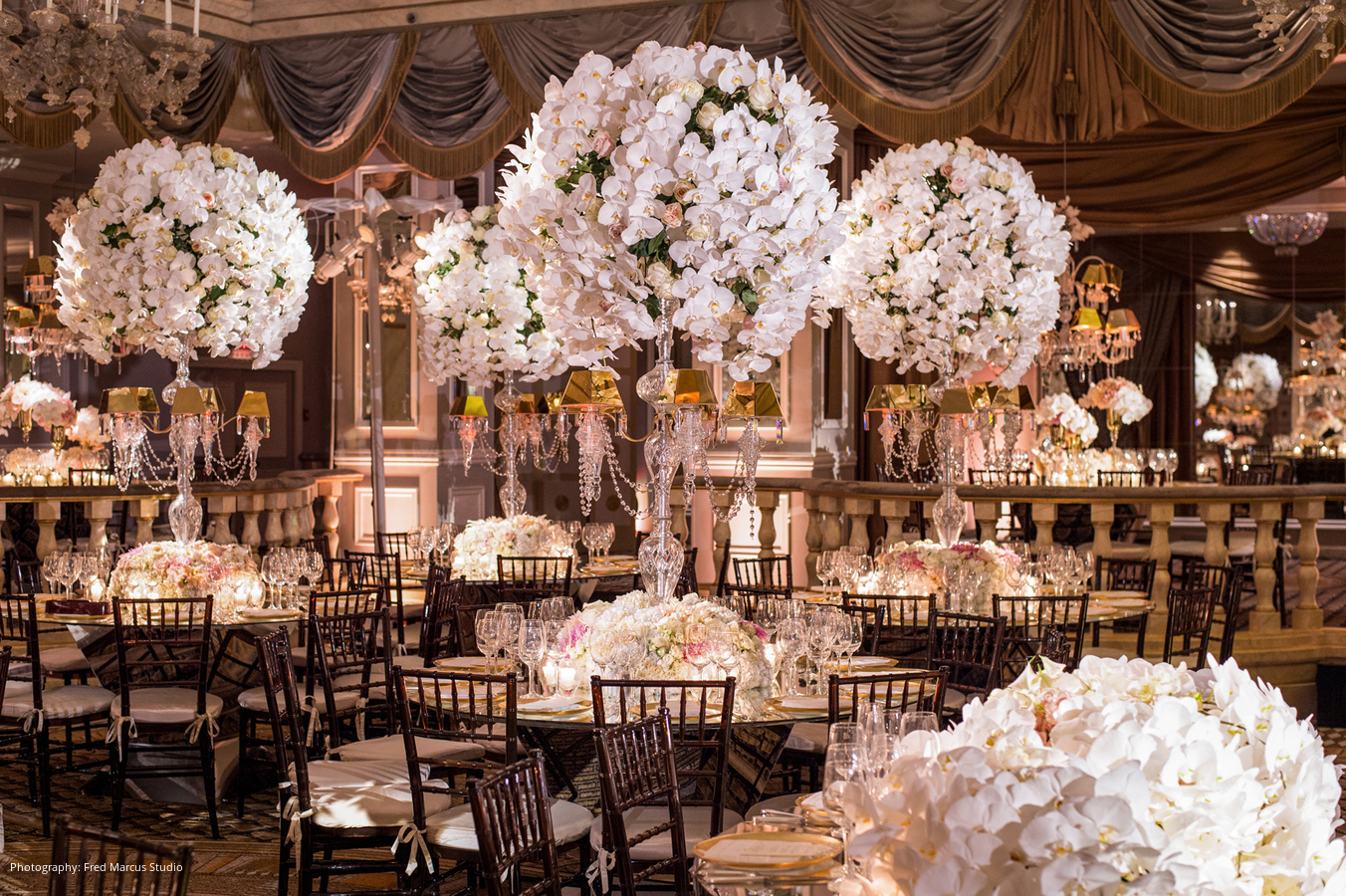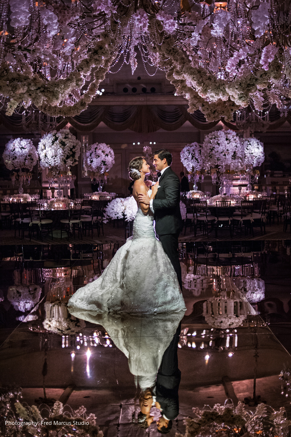 Ceremony: St. Vincent Ferrer, New York, NY; Reception: The Pierre, a Taj Hotel, New York New York, NY; Planners: Barbara Esses and Ruthie Hecht, New York, NY; Floral Design: SBK Event Design, New York, NY; Lighting: Frost Productions, New York, NY; Dance Floor: HITECH Events, LLC West Deptford, NJ; Invitations: Fancy That NYC, New York, NY; Wedding Dress and Veil: Ines Di Santo; Bride’s Headpiece: Christie Lauren