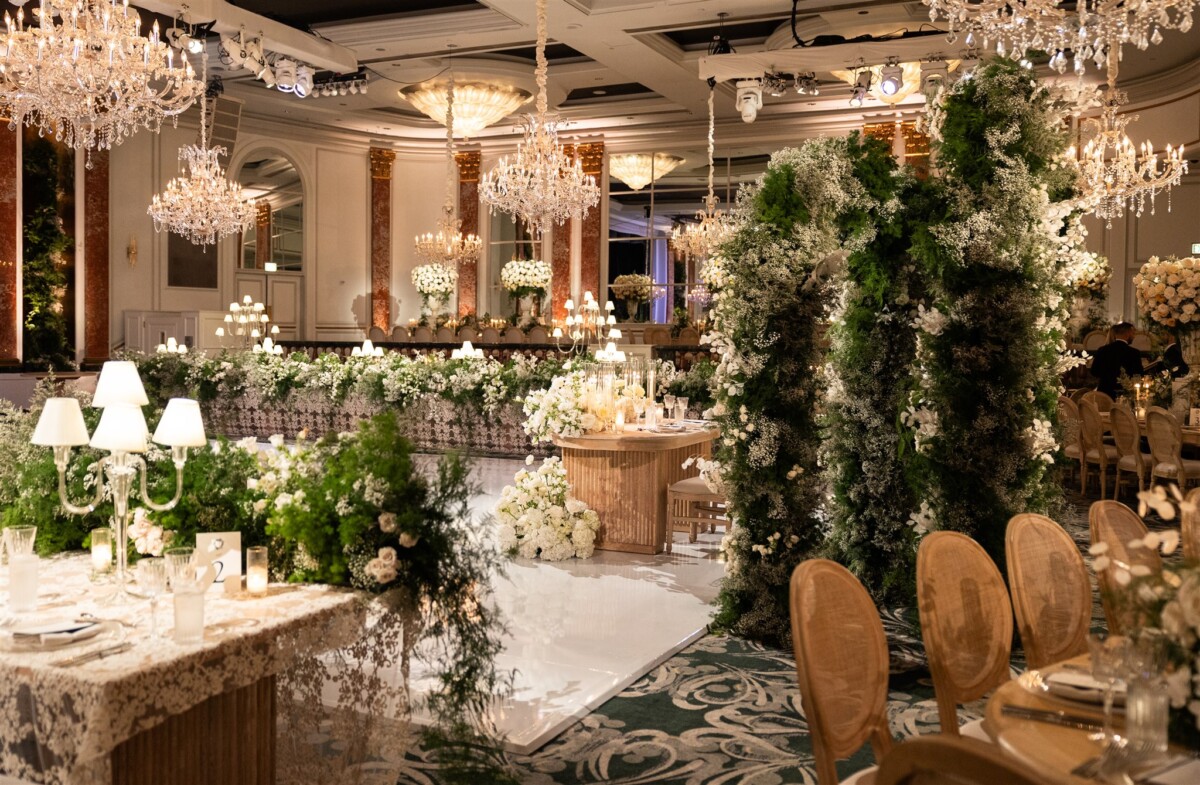 Location & Caterer: Beverly Wilshire, A Four Seasons Hotel, Beverly Hills, CA; Planner: Fancy That Events, Los Angeles, CA; Floral: Avant Garden LA, Los Angeles, CA; Linens & Rentals: MTB Event Rentals, Glendale CA; Cake: Rafi’s Cakes; Entertainment: Tigran Asatryan + Band; Invitations: Creative Works Design, Burbank, CA; Champagne Tower: Bottles & Blooms, Orange County, CA; Cinematography: White Rose Productions; Photography: Samuel Lippke Studios