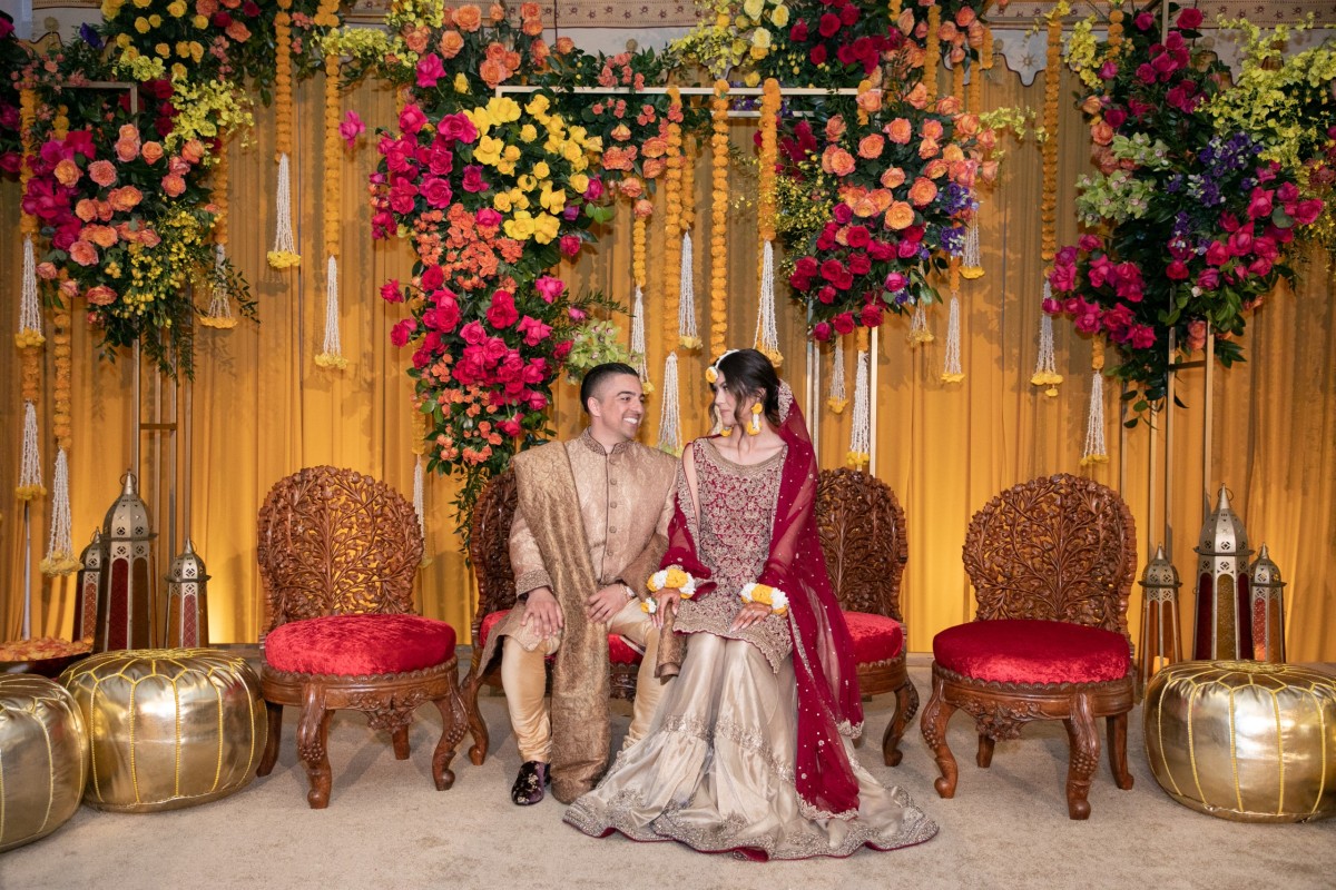 The next day was the couple’s Mehndi at the Hyatt Regency Newport Beach. Approximately 300 guests attended the party, which featured bright and colorful décor to match the energy and spirit of the event. The bride and groom’s families performed choreographed dances, and everyone enjoyed the catered Pakistani cuisine.