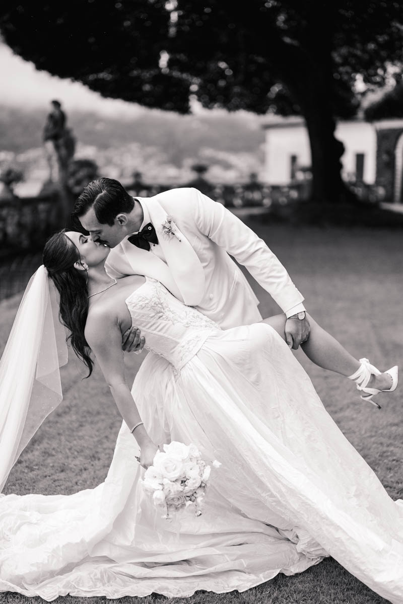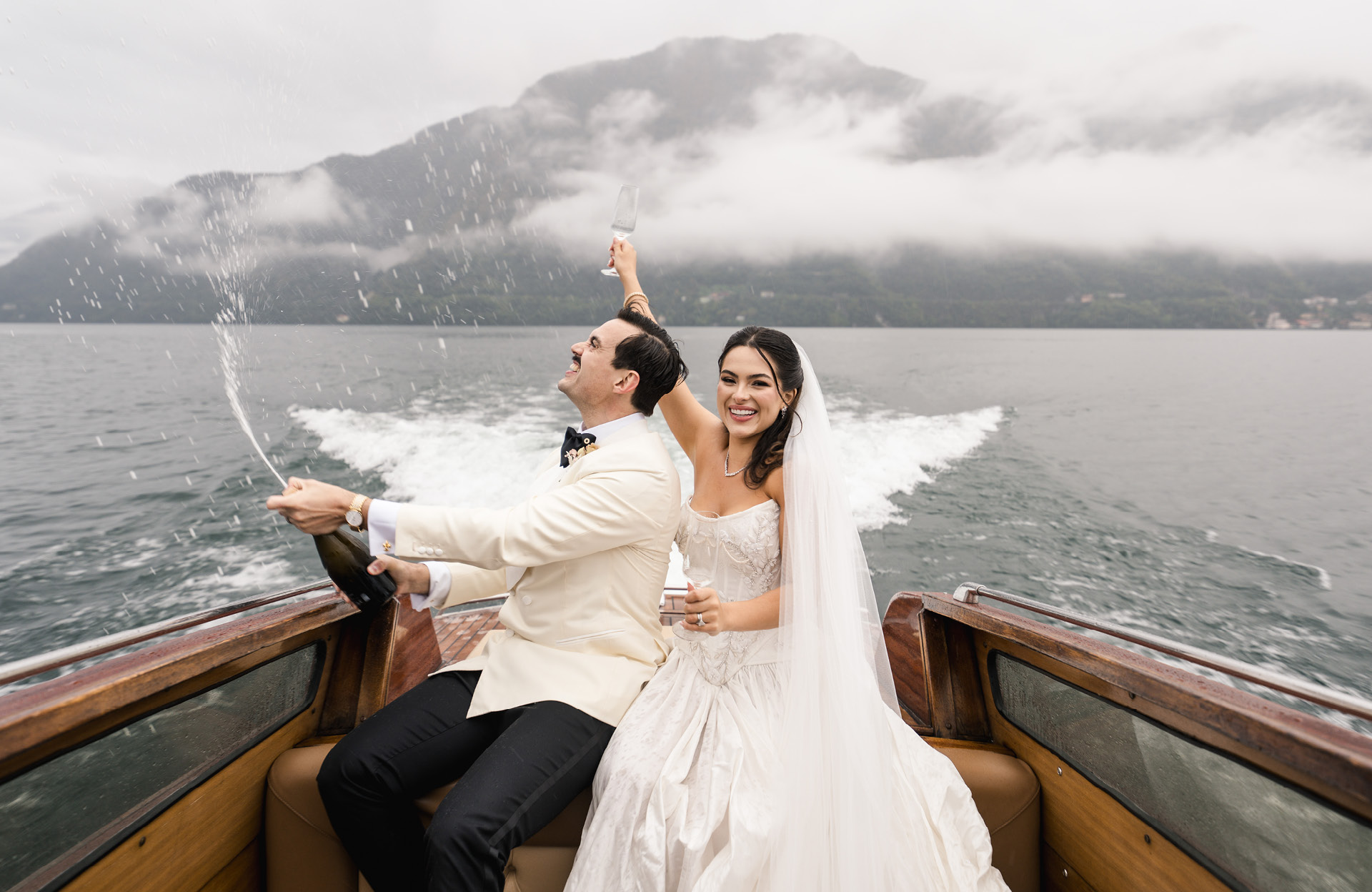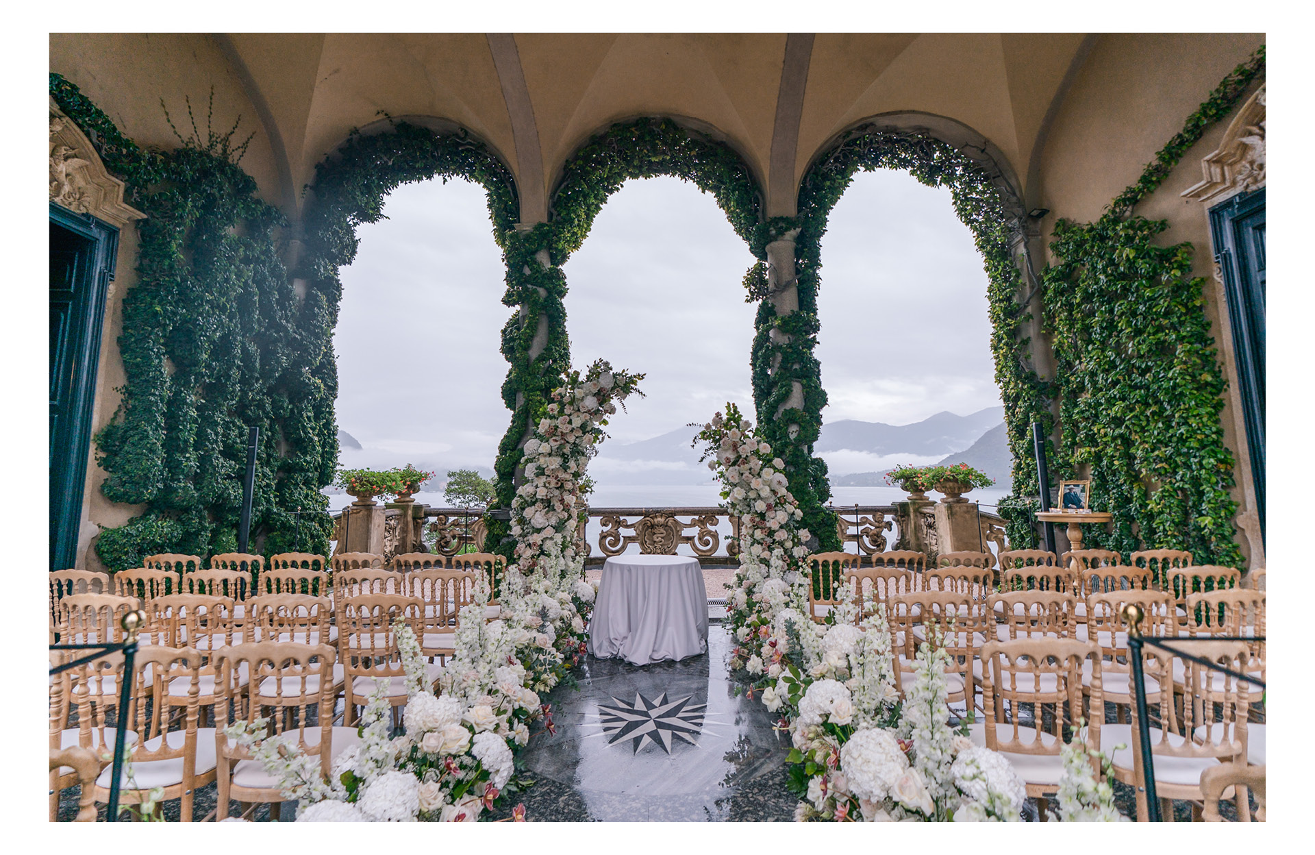 The wedding was beyond anything the bride and groom could have imagined. It rained that day, but as Italians say: “Sposa bagnata, sposa fortunata”—a wet bride is a lucky bride. The setting was ethereal, with Lake Como shimmering in the distance, surrounded by lush greenery and soft clouds.