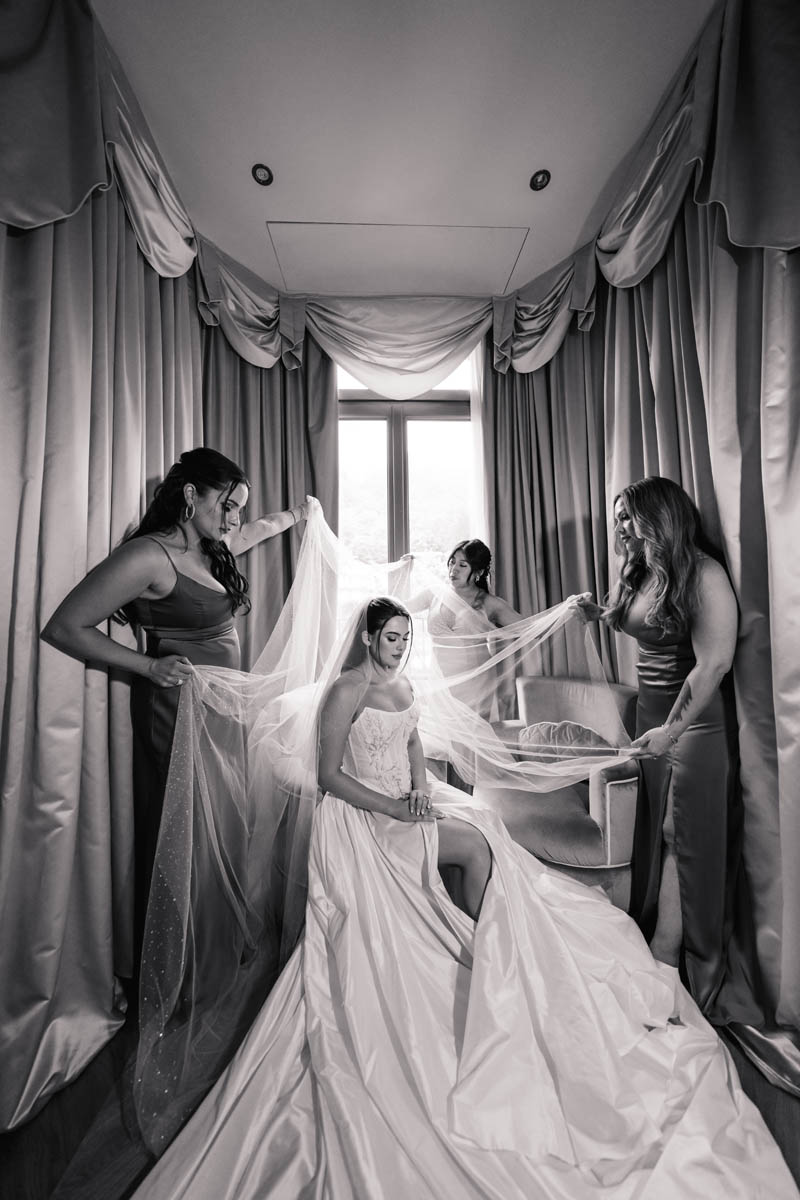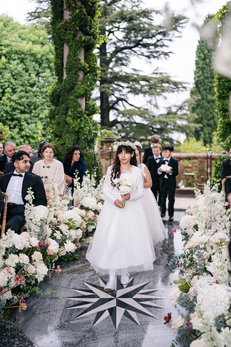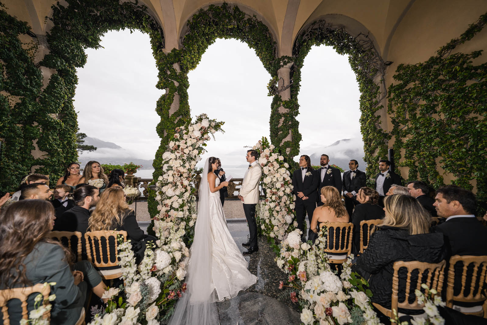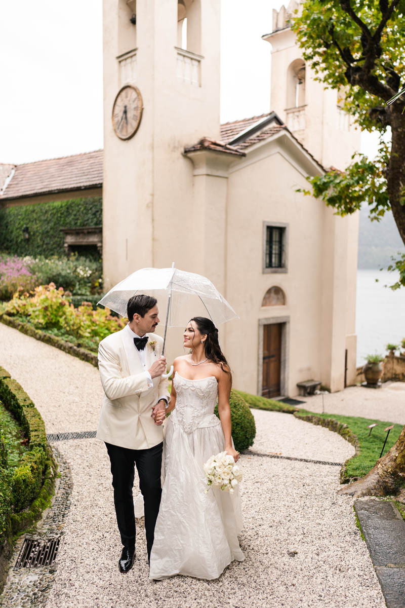 The wedding was beyond anything the bride and groom could have imagined. It rained that day, but as Italians say: “Sposa bagnata, sposa fortunata”—a wet bride is a lucky bride. The setting was ethereal, with Lake Como shimmering in the distance, surrounded by lush greenery and soft clouds.