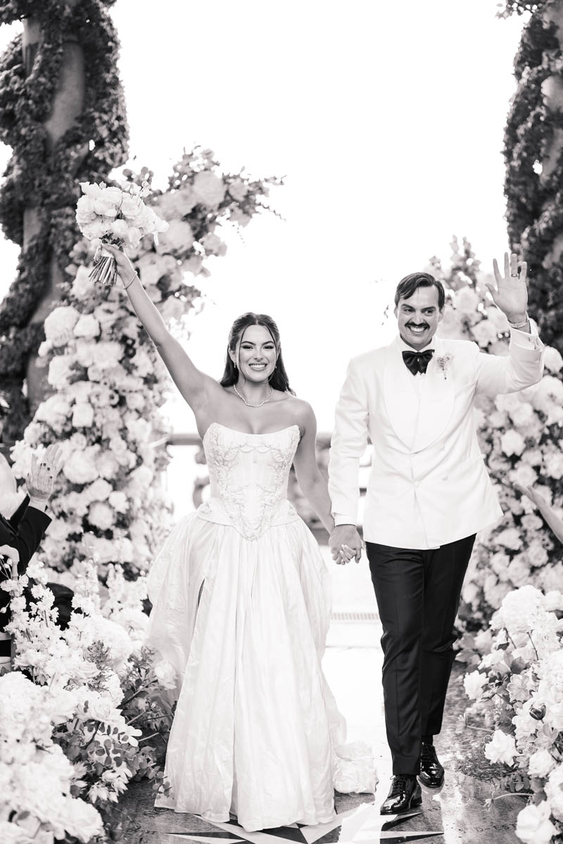 “I wore red-bottom heels embroidered with our initials, while Diego matched with his own,” says the bride. “As my mother walked me down the aisle, one of my father’s last voicemails played softly in the background, accompanied by a harpist performing ‘Young and Beautiful’ by Lana Del Rey. It was emotional, powerful, and deeply personal. When we released white doves at the end of the ceremony, it felt like my father’s presence surrounded us, blessing the moment.”