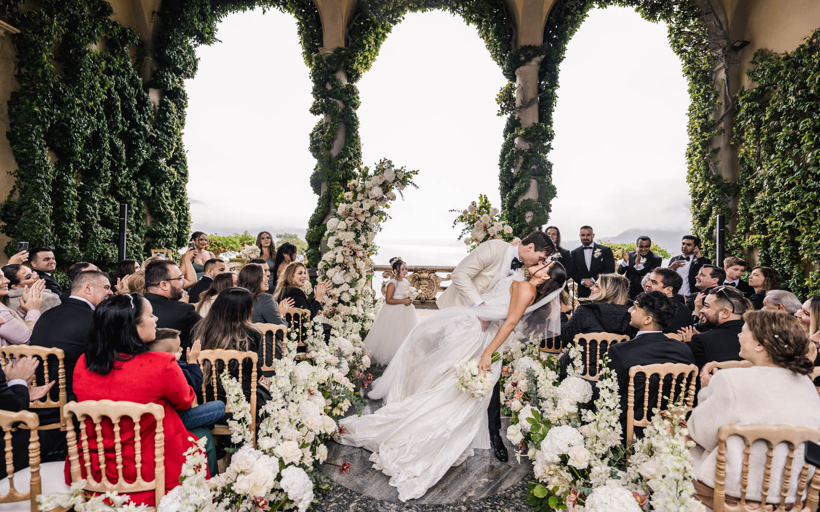 Location: Villa del Balbianello; Planning & Event Design: I Do in Lake Como; Floral Design: Flowers and Me; Rentals: Memorable Rentals; Lighting & Entertainment: Blunotte Eventi; Cake & Catering: Class Eventi; Wedding Dress: Kim Kassas; Hair & Makeup: Merita Bridal Beauty; Groom’s Attire: Bespoke & Co.; Groom’s Watch: Longines La Grande Classique; Dancefloor & Marquee: 0039 Events; Wedding Painter: Agnes Sundling; Cinematography: AG Studio; Photography: Cristiano Ostinelli