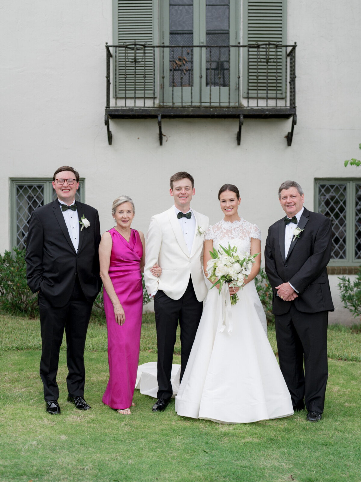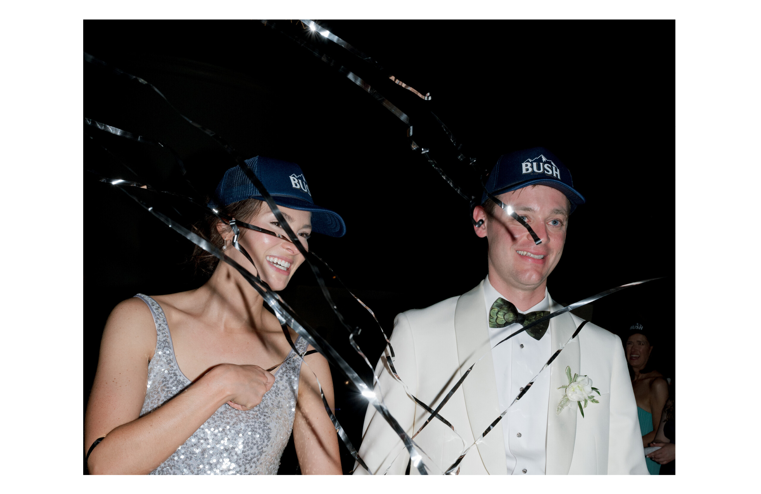 “God’s presence was palpable as we retreated back down the aisle, hand-in-hand as husband and wife,” says the bride. “While we were most excited to start our lives together as one, we were equally as thrilled to have all of our most cherished people gather collectively in celebration. As a couple, we believe that our greatest asset is our family. We are both lucky enough to come from rather large families. Our parents instilled in us a strong foundation of faith and deep understanding of unconditional, compassionate love. In effort to honor a lifetime of devotion, Weston and I opted to include a ‘first dance’ with both sets of our parents. We waltzed around the dance floor to ‘Fly Me to the Moon’ by Frank Sinatra, the same song my parents danced to on their wedding night.”