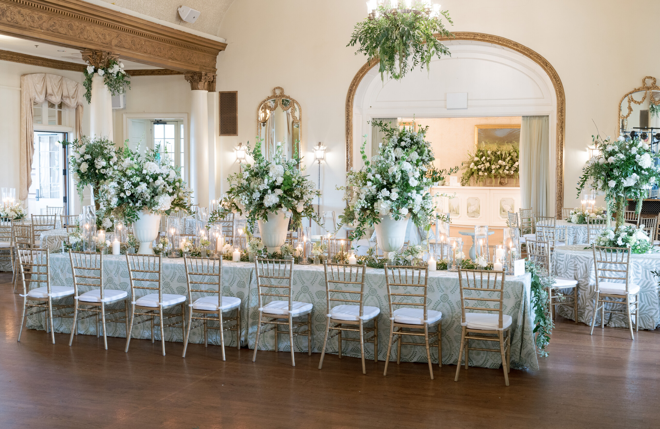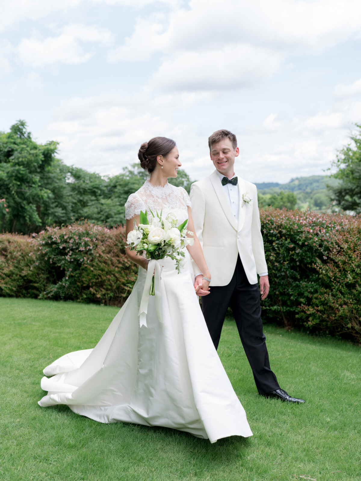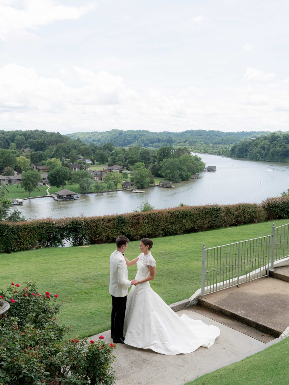 Inspired by East Tennessee, the couple wanted to highlight the region’s beauty through their wedding décor. Native and seasonal florals were used to create a clean, simple design. Cherokee Country Club provided the perfect canvas for the reception, nestled along a breathtaking bend of the Tennessee River with the Smoky Mountain ridgeline as a magnificent backdrop. With a lush array of green and white florals filling the ballroom, the couple’s ode to East Tennessee was the epitome of understated elegance, giving their wedding day a genuine sense of Southern charm.