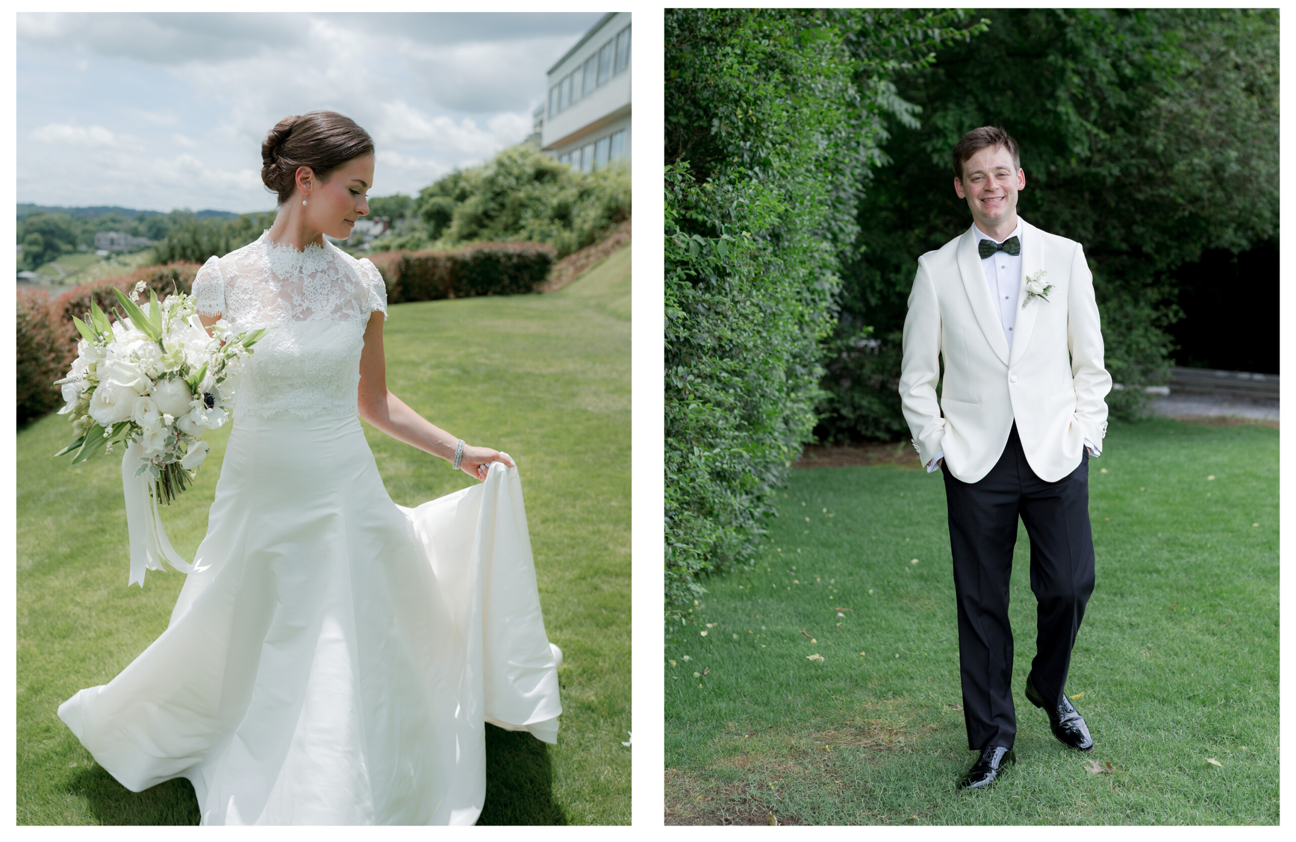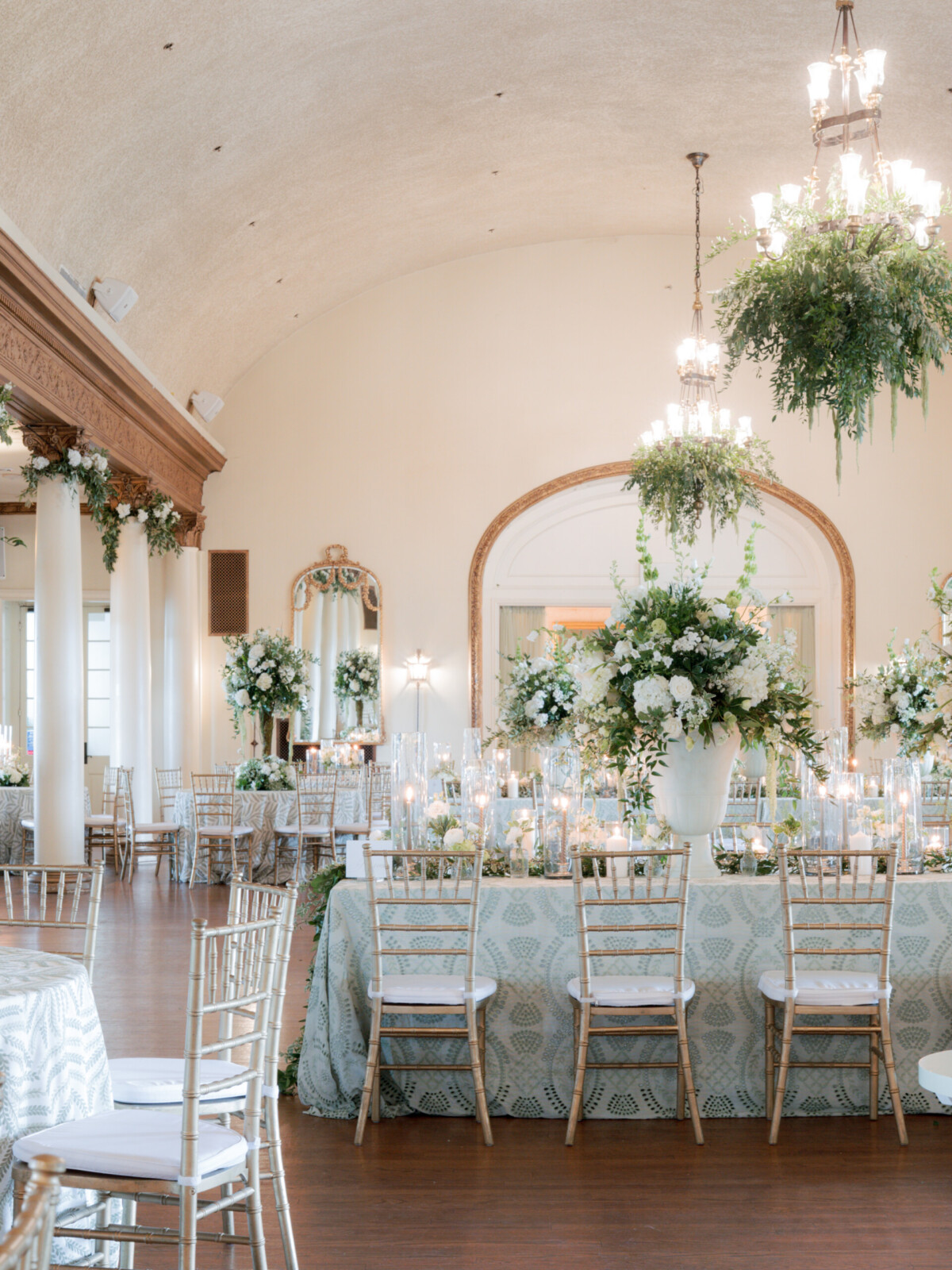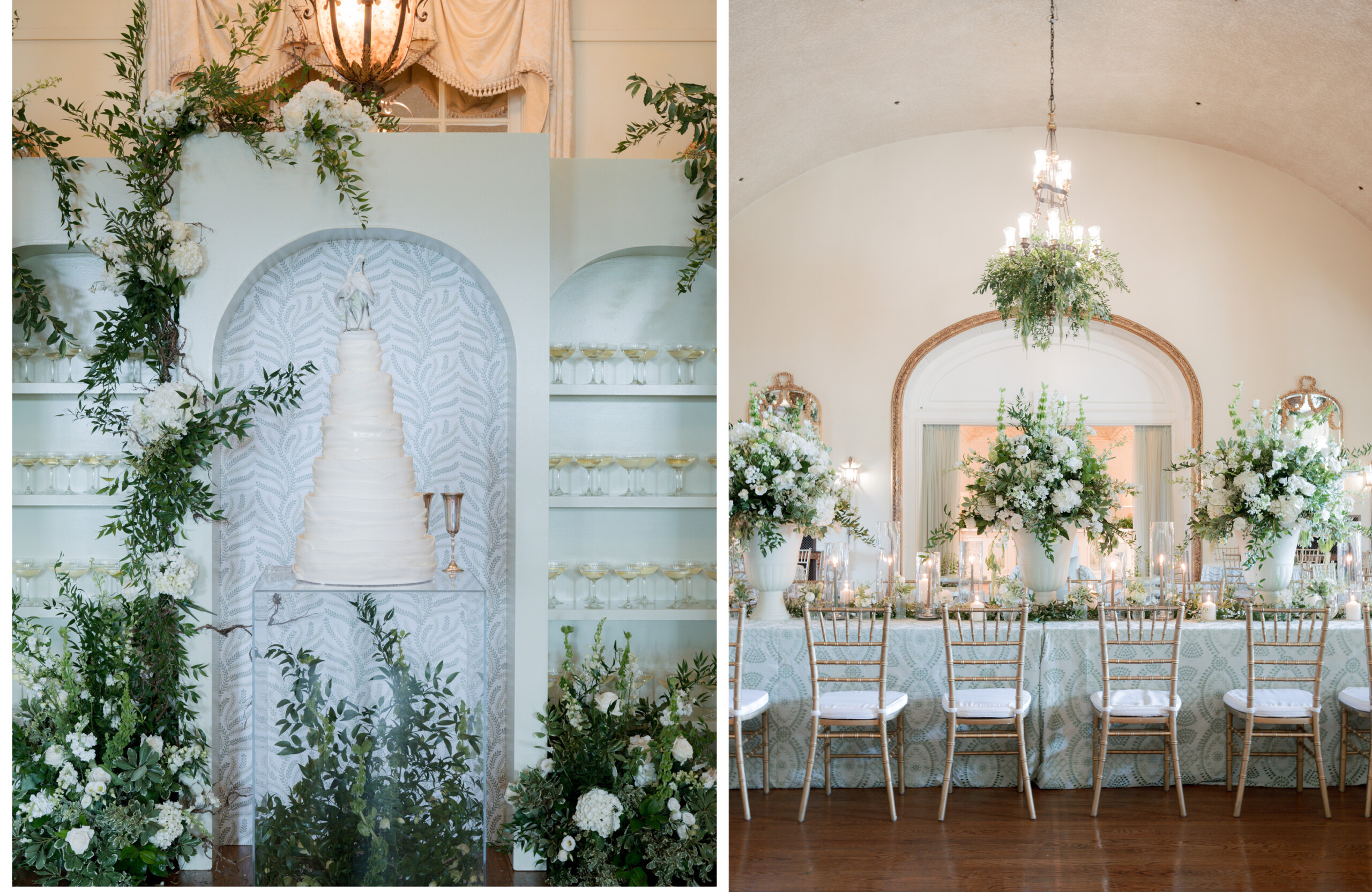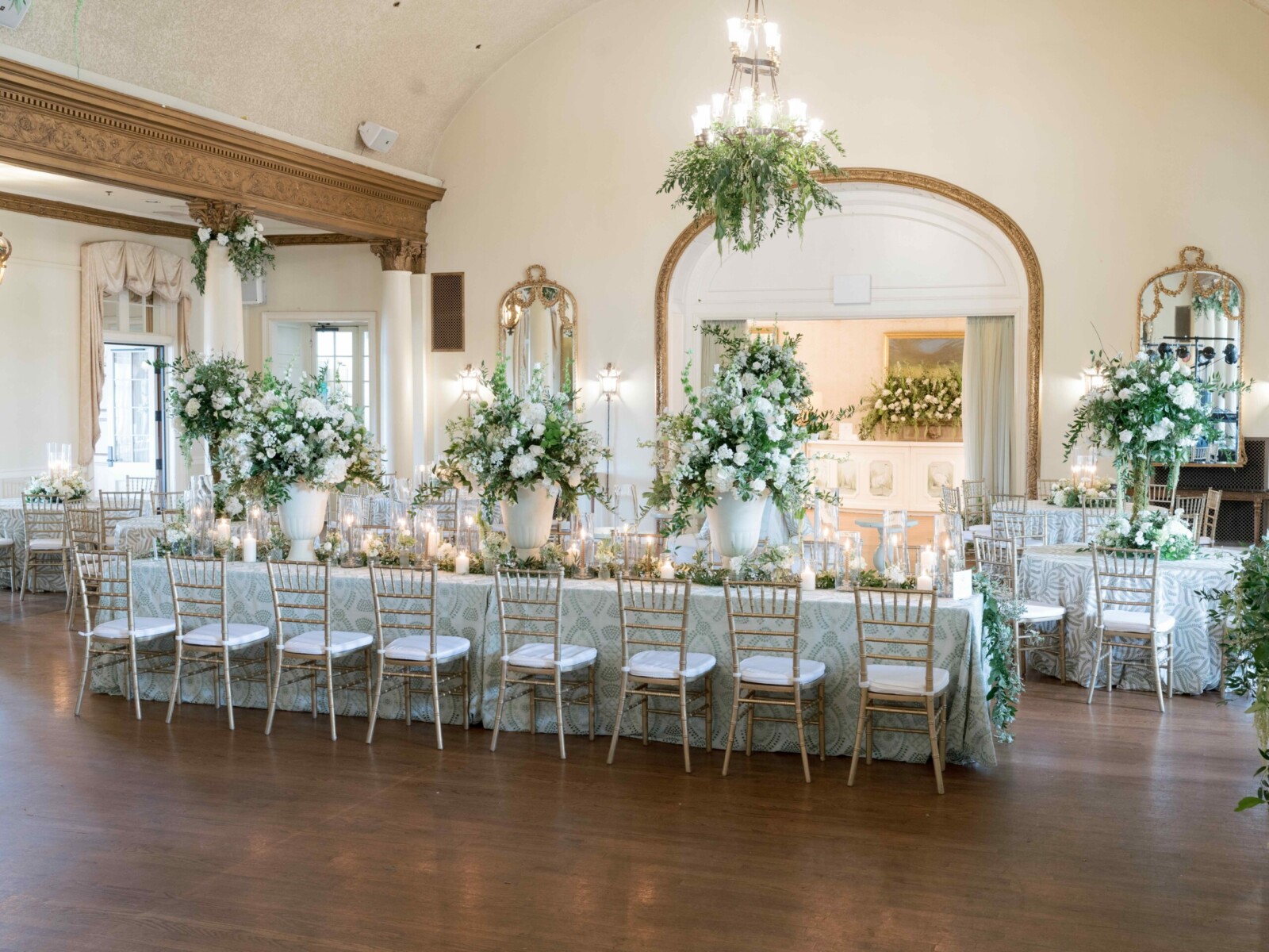 Inspired by East Tennessee, the couple wanted to highlight the region’s beauty through their wedding décor. Native and seasonal florals were used to create a clean, simple design. Cherokee Country Club provided the perfect canvas for the reception, nestled along a breathtaking bend of the Tennessee River with the Smoky Mountain ridgeline as a magnificent backdrop. With a lush array of green and white florals filling the ballroom, the couple’s ode to East Tennessee was the epitome of understated elegance, giving their wedding day a genuine sense of Southern charm.