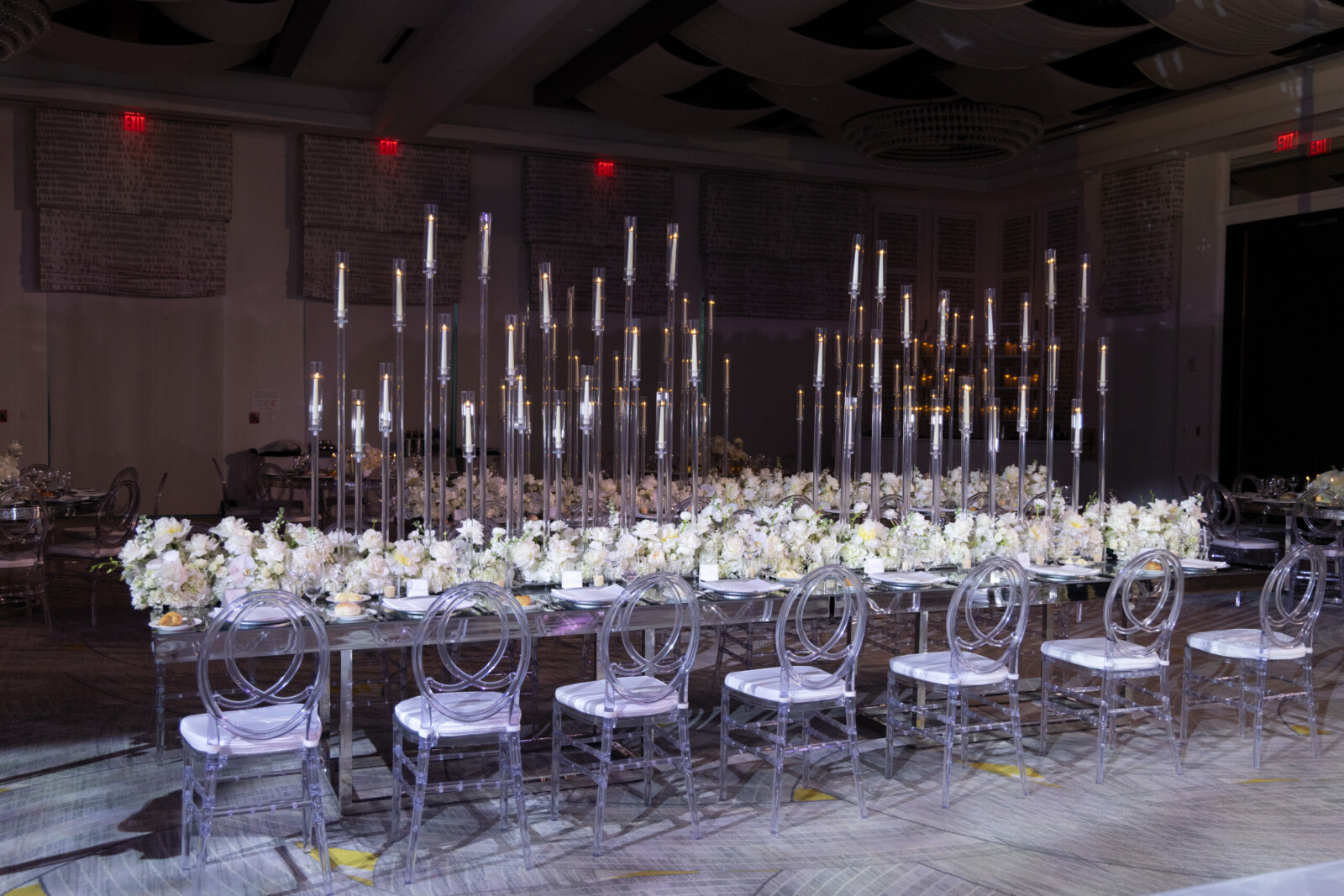 The couple’s destination wedding took place at Kimpton Seafire, where an oceanfront ceremony was followed by a glamorous indoor reception. The wedding décor included all-white floral arrangements designed by Celebrations, mirrored tables, and crystal details that added extra layers of luxury to their Cayman Island celebration.