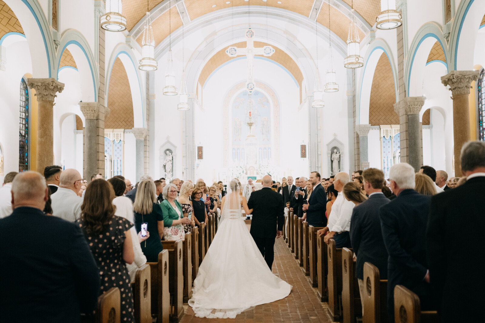 “During dinner, our band was playing ‘Shallow,’ and almost the entire reception started singing along, prompted by the most unexpected groomsmen. It was hilarious and will live rent-free in our memories forever.”