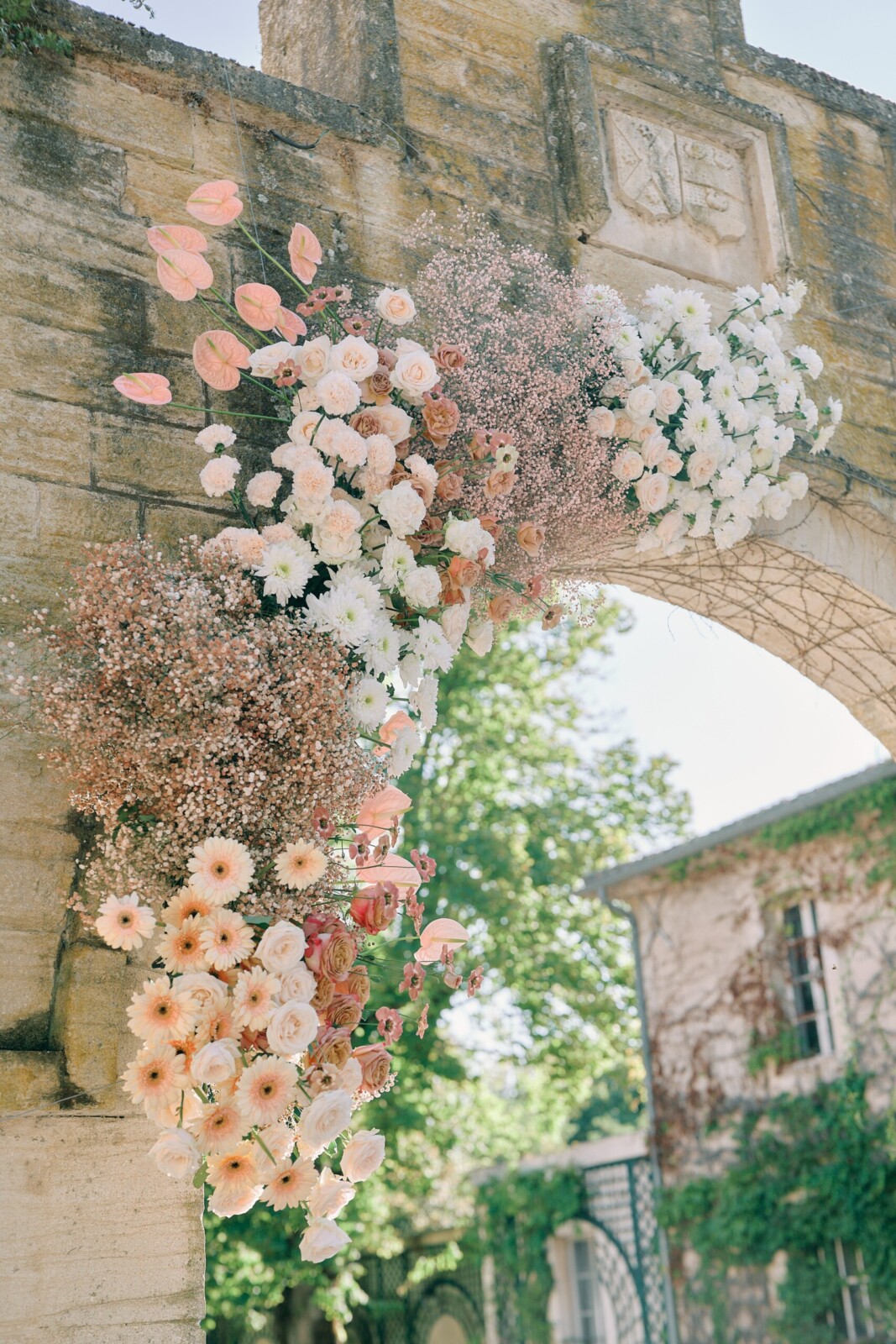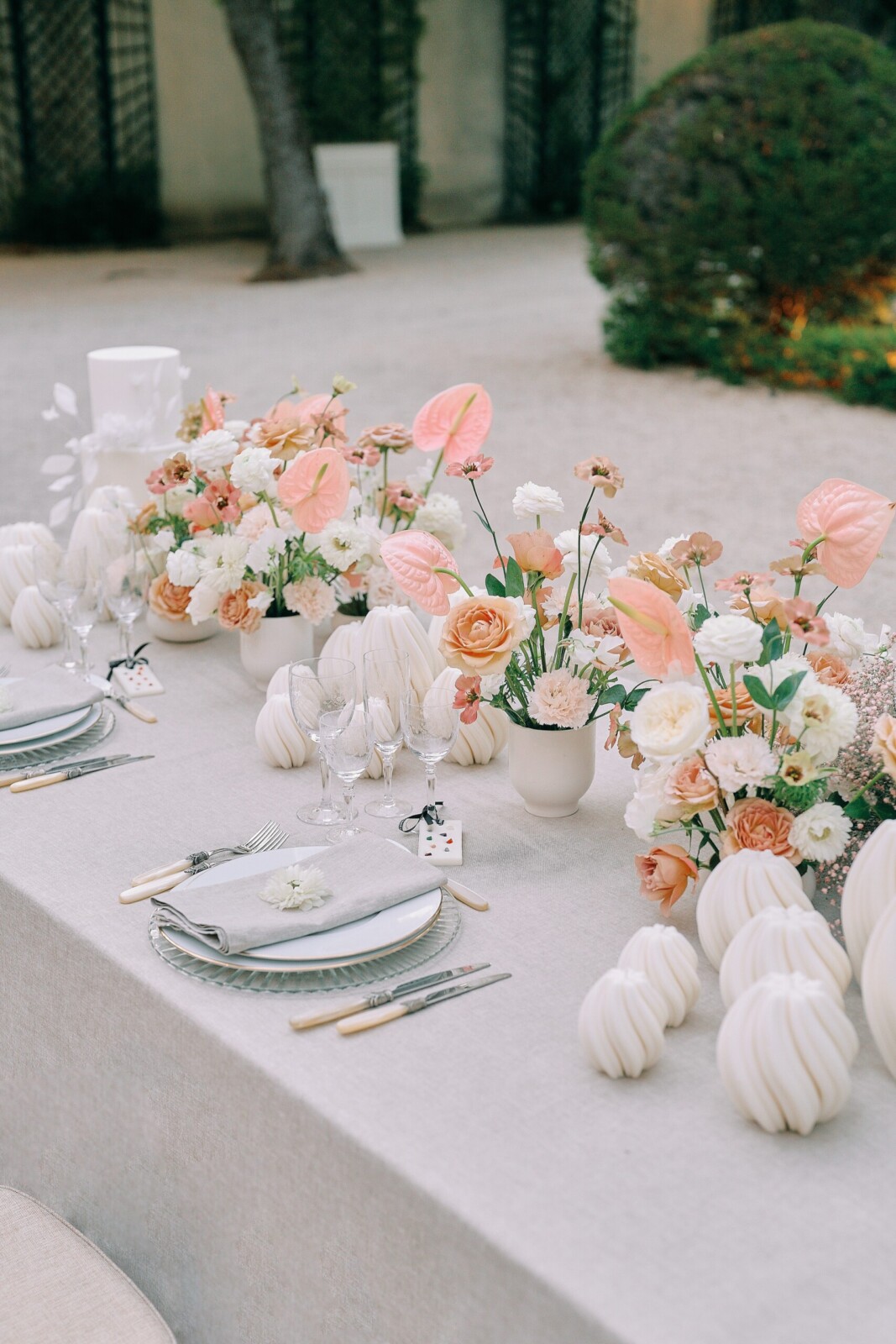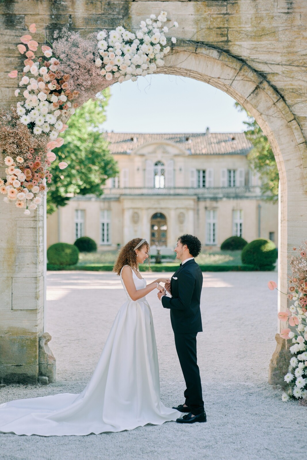 "We built the palette around neutral, sunlit tones to echo the château stones and the effortless summer feeling of Provence," Muriel notes. "The goal was to create something timeless, then allow each couple to push the cursor further depending on their personality."