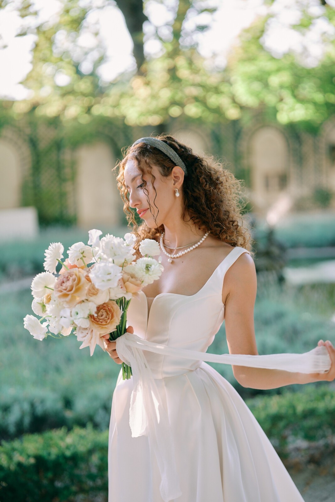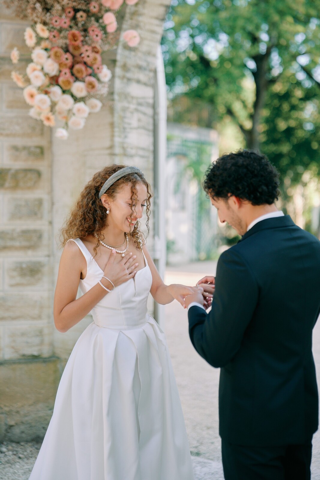 "In an elopement, every detail is closer, more visible, more meaningful," she adds. "Accessories help elevate the silhouette, catch the light, and add personality while keeping the overall feeling refined."
