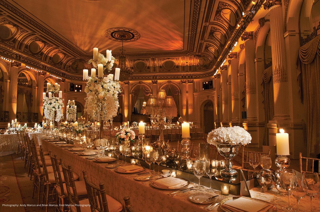Walking into an Ed Libby designed event; whether it be a lush wedding, an engagement reception, or a lavishly outrageous and personalized party for P.Diddy or Naomi Campbell, one is at first struck by the originality, color, grandeur, scale and magnificence of his created interiors. Libby’s “signatures” include huge floral & crystal chandeliers dripping from the ceiling, majestic columns & fountains bearing candles & profusely surrounded with floral bouquets and, at some events, human statues created by BodyCastTan Ed Libby Company.