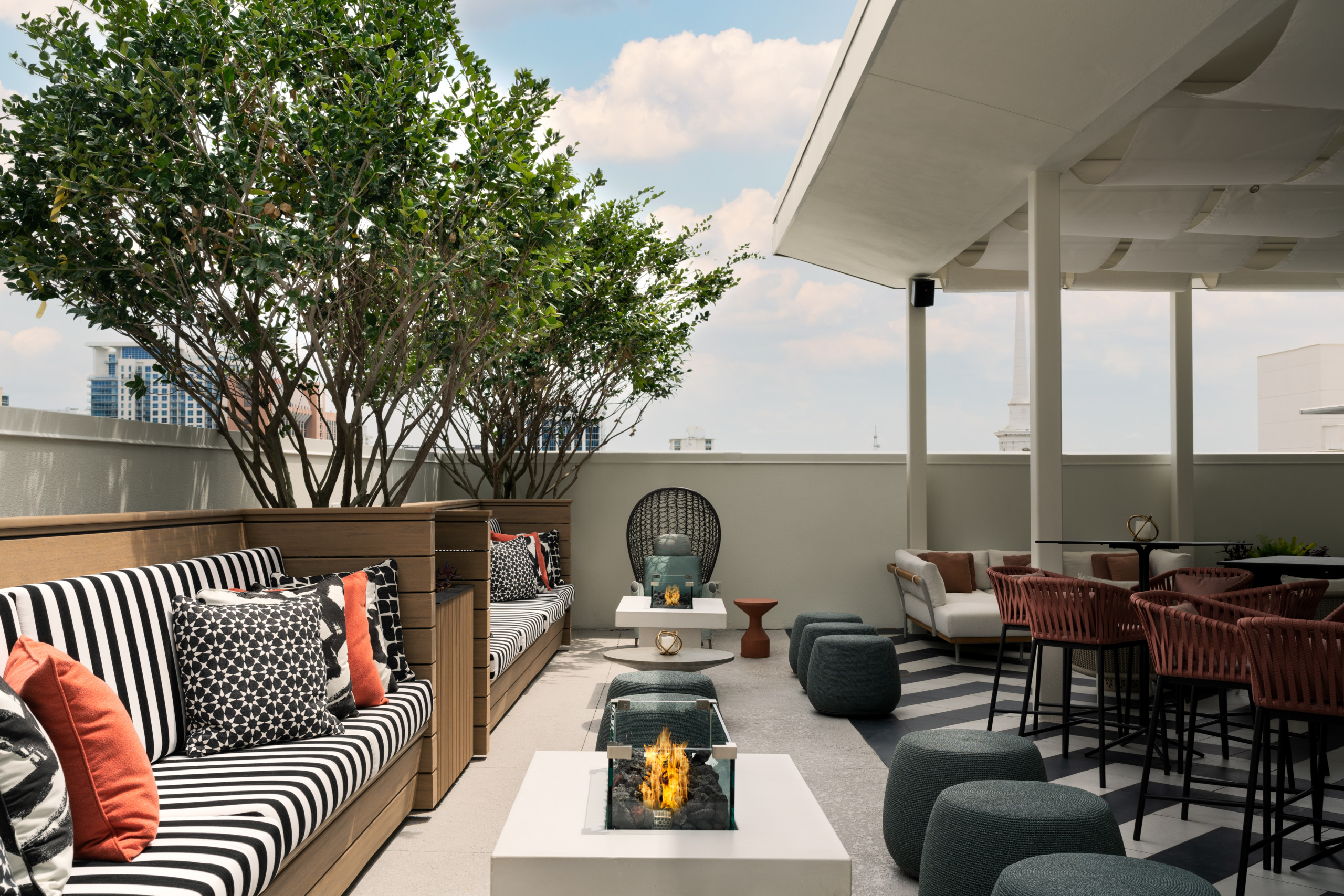 Beyond the wedding festivities you and your guests will discover a world of luxury and convenience with the on-site amenities at Grand Bohemian Orlando. Pamper yourself with a visit to the full-service Poseidon Spa, where indulgence awaits with a range of rejuvenating treatments. Unwind in style at the iconic Bösendorfer Lounge or at the new, chic rooftop pool lounge, Altira, offering breathtaking views of the city skyline and a relaxing atmosphere perfect for sipping cocktails with loved ones. For those seeking culinary delights, the on-site restaurant, Boheme, tantalizes the taste buds with a menu inspired by global flavors and local ingredients, ensuring a dining experience like no other. Whether you’re relaxing by the pool, enjoying a spa day, or savoring delicious cuisine, the on-site amenities add an extra layer of luxury to your wedding experience at Grand Bohemian Orlando.