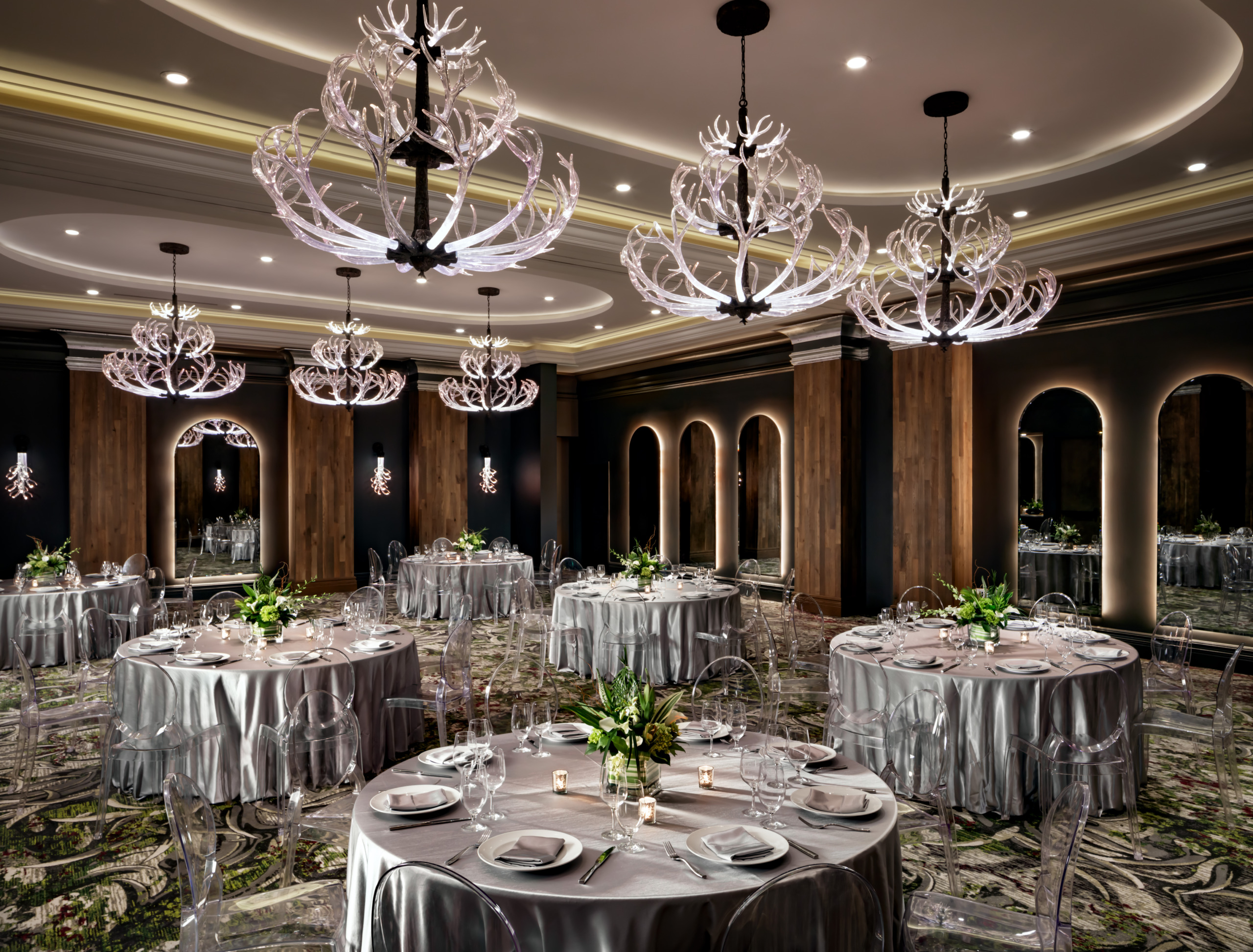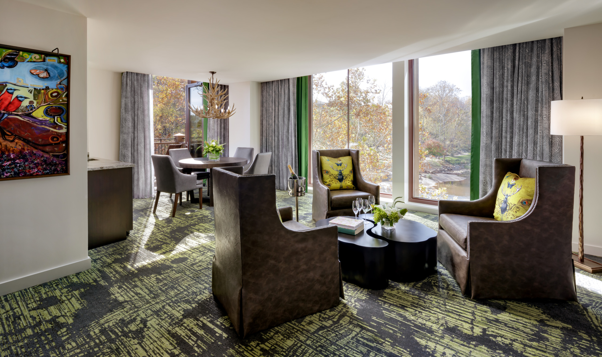 The Grand Bohemian Lodge offers a variety of versatile event spaces to accommodate weddings of all sizes. Whether you’re planning an intimate gathering or a lavish celebration, the hotel has the perfect setting to suit your needs. The outdoor Greenspace provides a romantic setting for a ceremony with picturesque views of Greenville, while the Antler Ballroom offers an artful and sophisticated space for a reception that will leave a lasting impression on your guests.