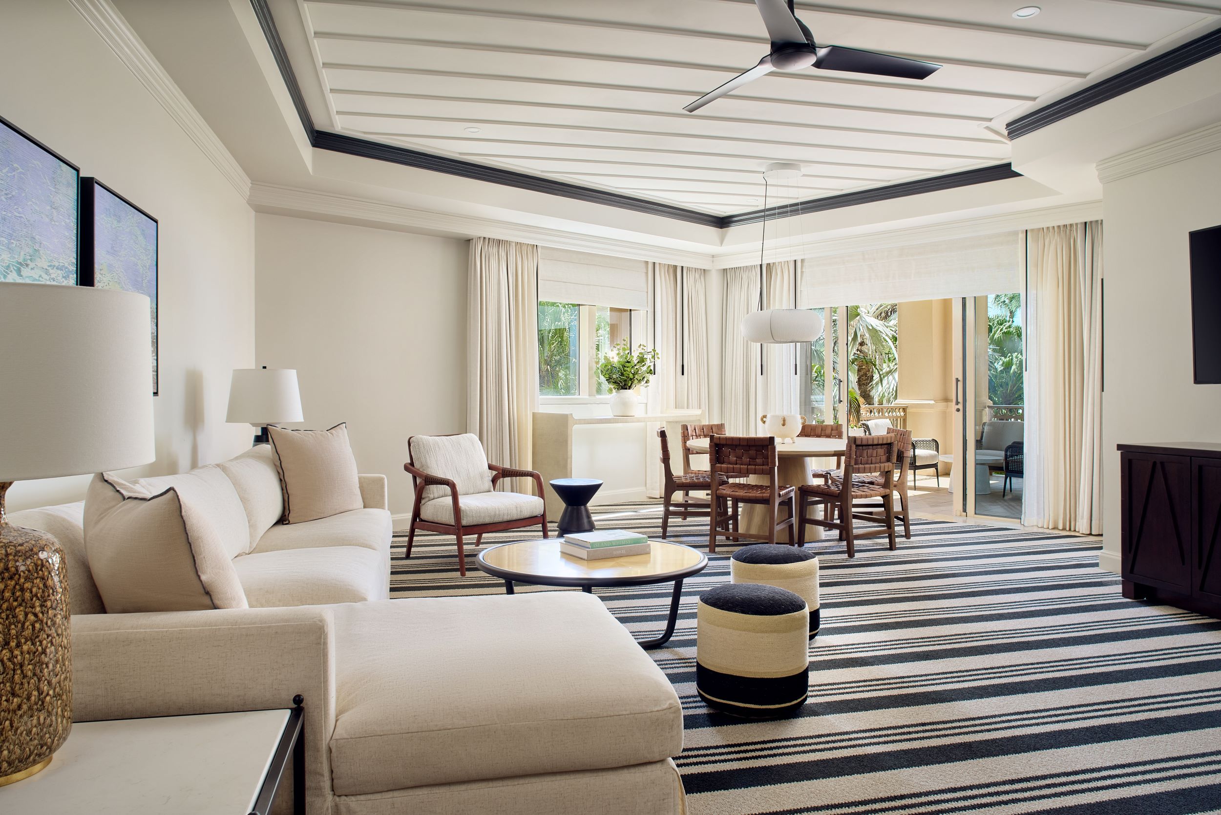 Guest rooms and suites are composed in a refined yet relaxed palette that mirrors the sea and sky. Many open to views uninterrupted by horizon, inviting light and breeze into spaces that feel simultaneously private and expansive. The Ritz‑Carlton Suite, in particular, is an exemplar of understated grandeur, with distinct living and dining zones, bespoke furnishings, and a vantage point over the beach that defines the property’s identity.