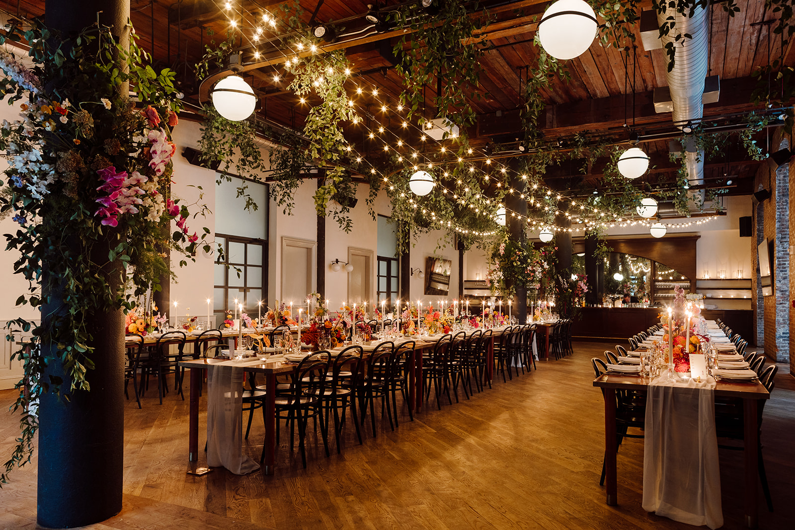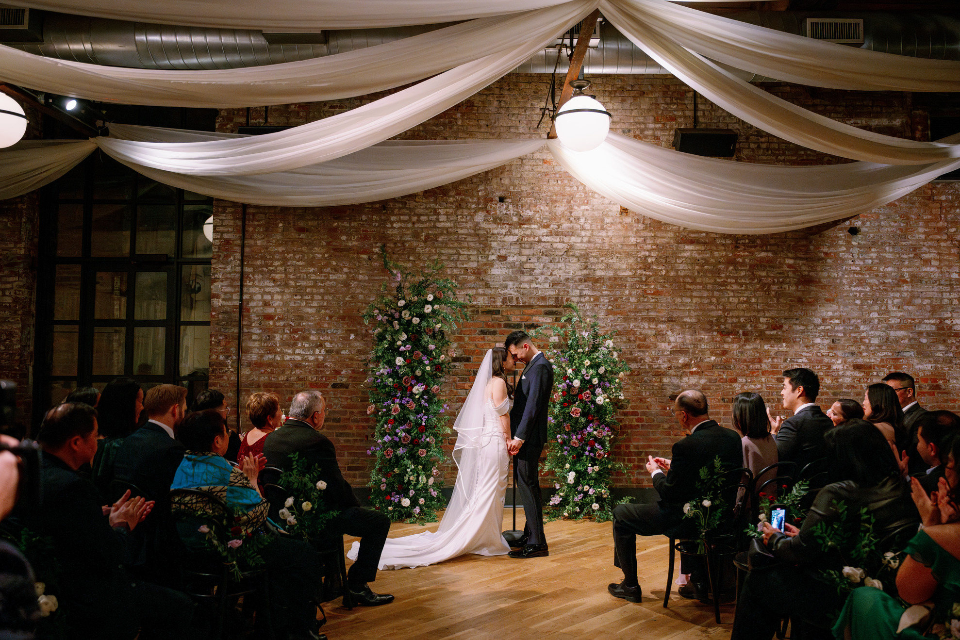 Set in a restored 1901 former sugar barrel cooperage factory on the Williamsburg waterfront, Wythe Hotel offers a wedding experience that’s both effortlessly stylish and deeply personal. As the original boutique hotel in the neighborhood, Wythe combines historic charm with thoughtful design and warm hospitality — creating a one-of-a-kind backdrop for couples looking to celebrate in Brooklyn.